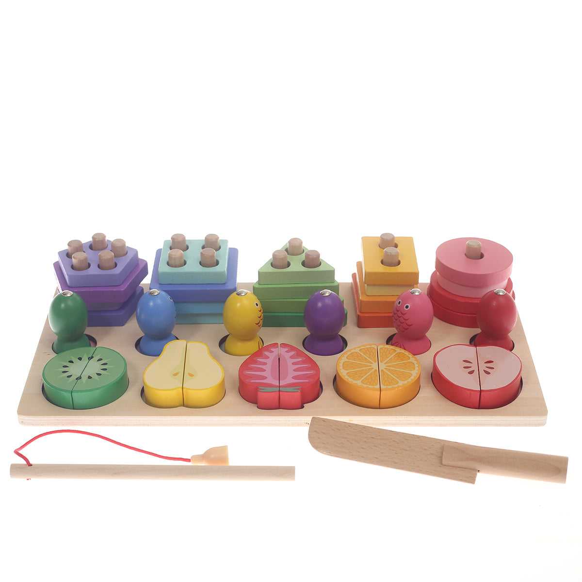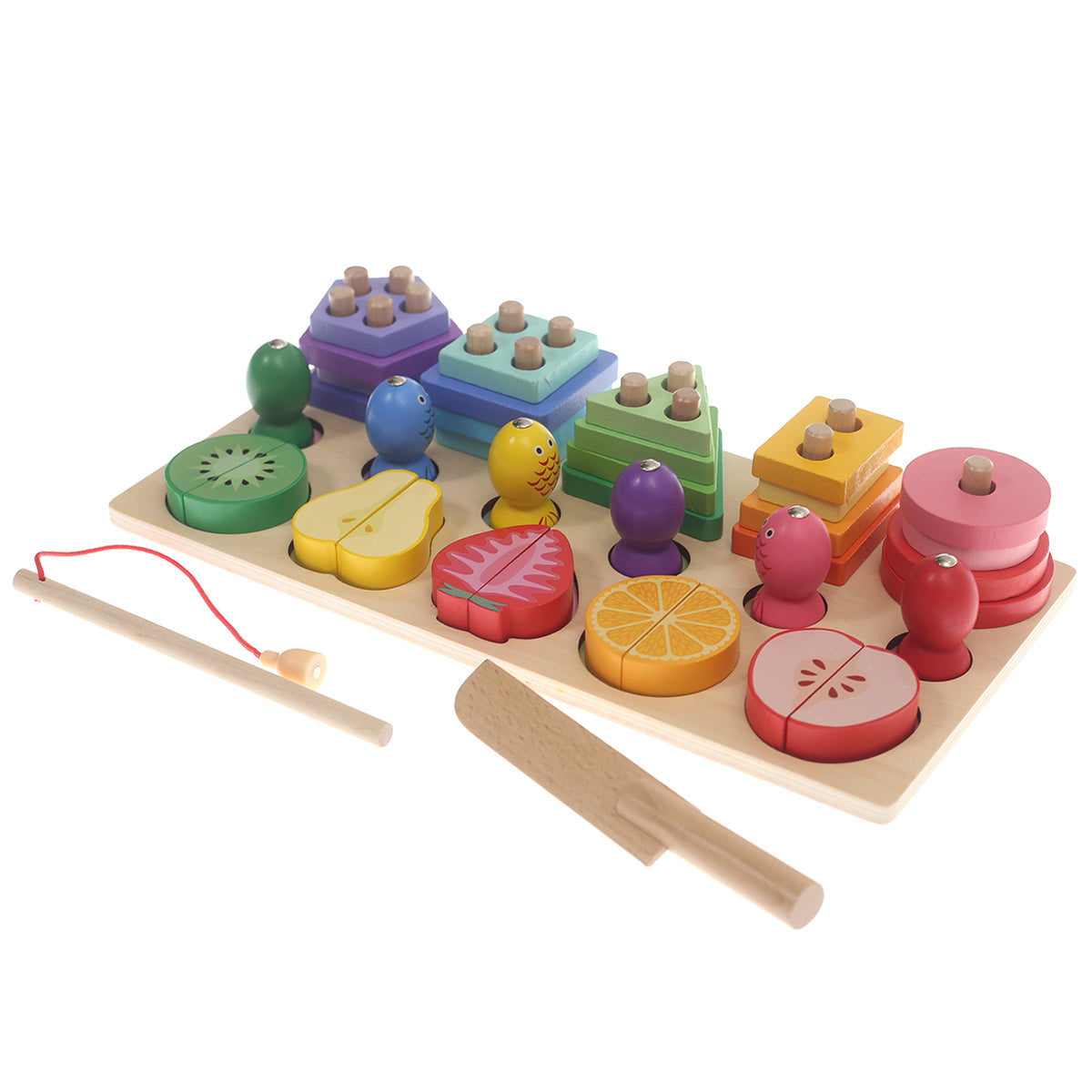 3 In 1 Shape Sorter, Fruit Cutting & Fishing Multi 13 X 6.5 Inch ZA-SG-2407-6