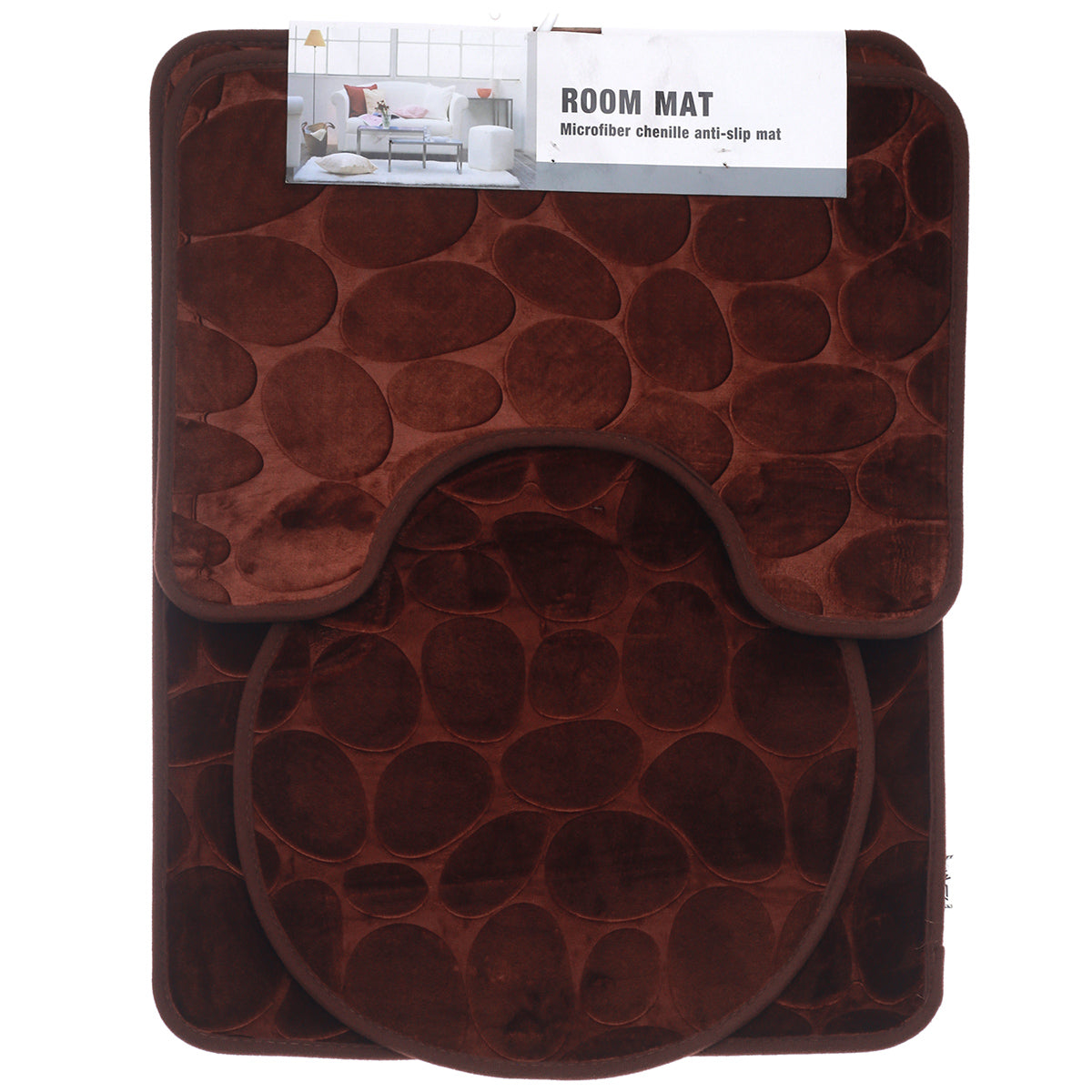 3 PCS BATH MAT SET BRWON PEBBLE
