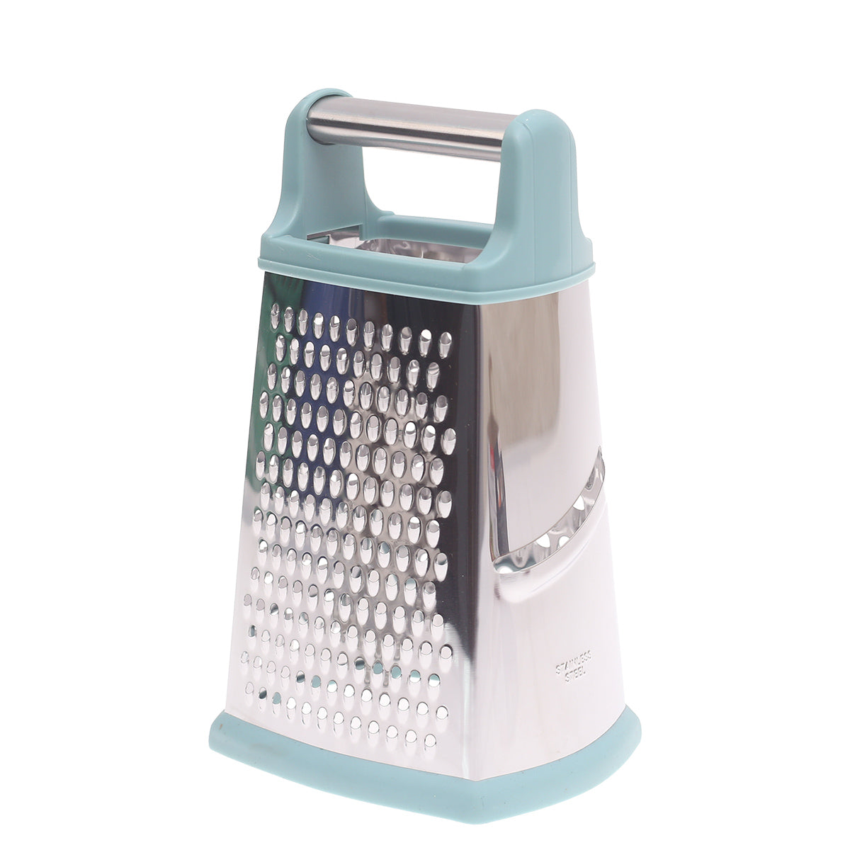 4-Sided Stainless Steel Grater with Aqua Soft-Grip Edges & Metal Handle