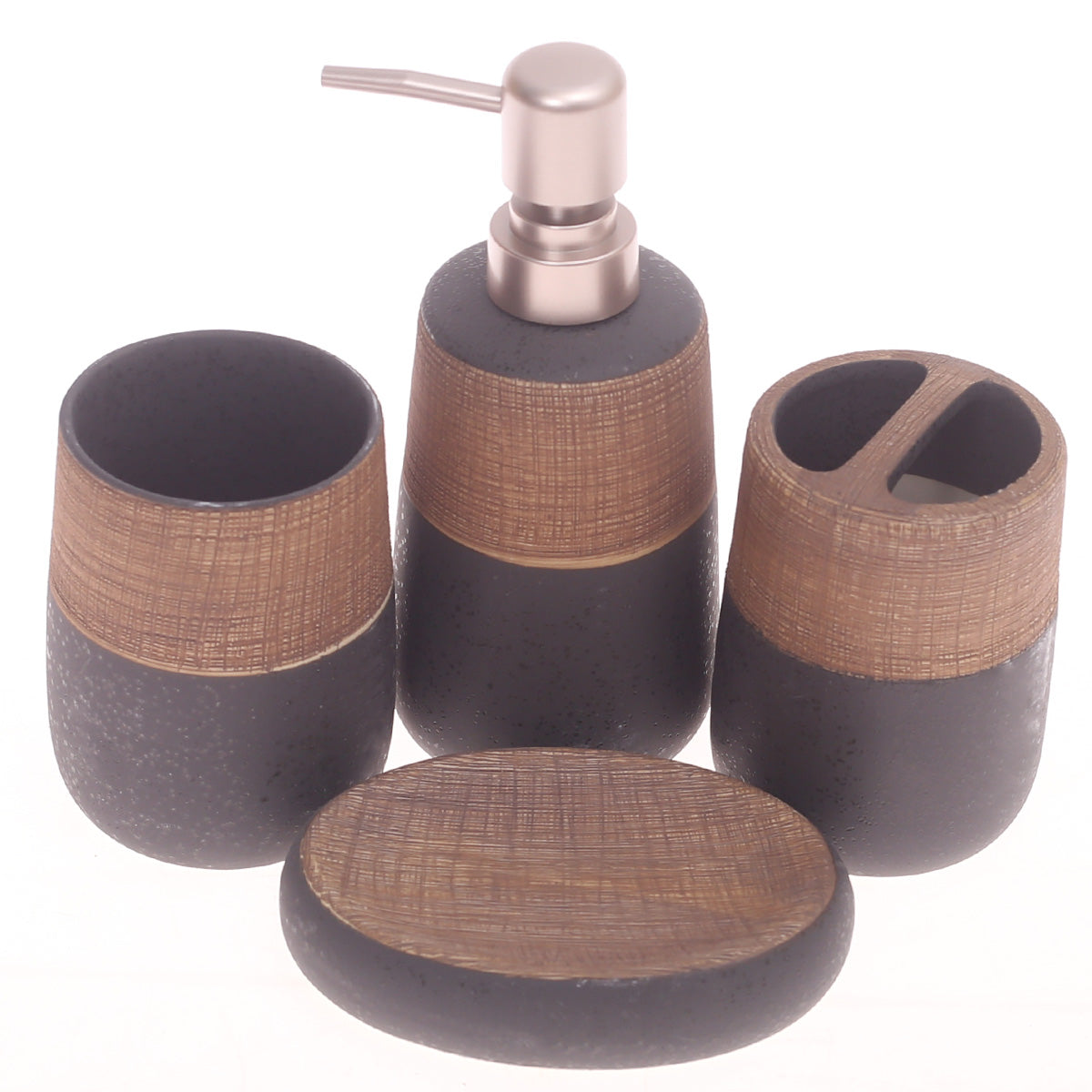 4Pcs Bath Set Black & Brown 10 X 9 Inch Gs-08