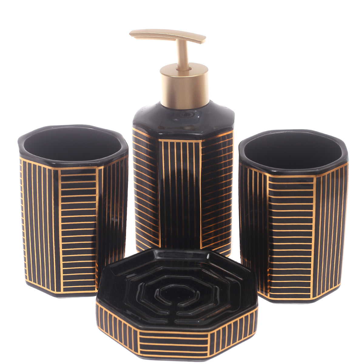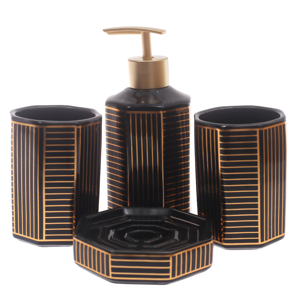 4Pcs Bath Set Black & Gold 9 X 8 Inch Gs-18
