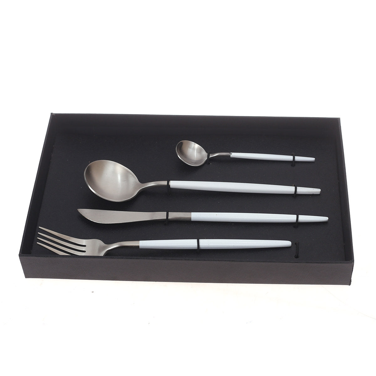 4Pcs Cutlery Set White & Silver 11.25 X 7.5 X 1.5 Inch WS-003