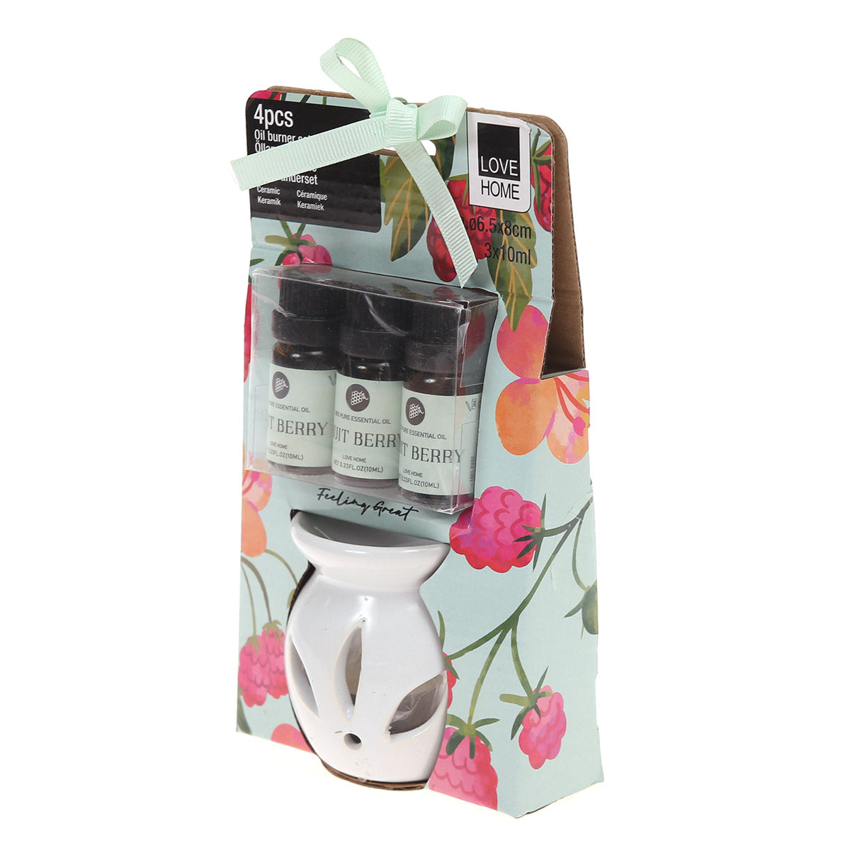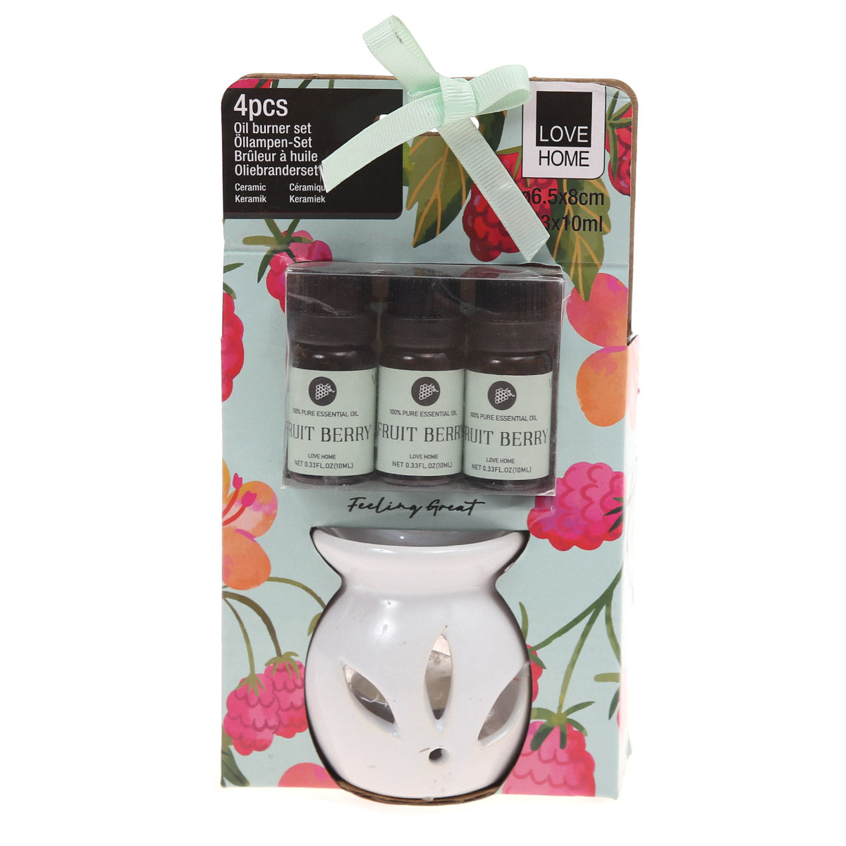 4Pcs Oil Burners W/Oils Set Fruit Berry White 5 X 1.5 X 8 Inch AXW-002