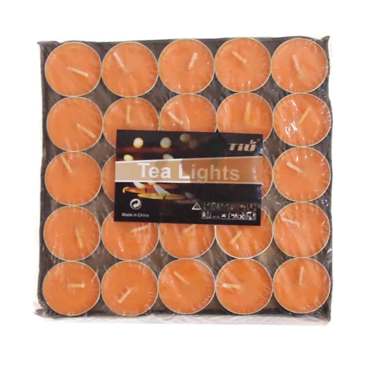 50Pcs T-Light Candle Set Orange 7 X 7 Inch JW-08