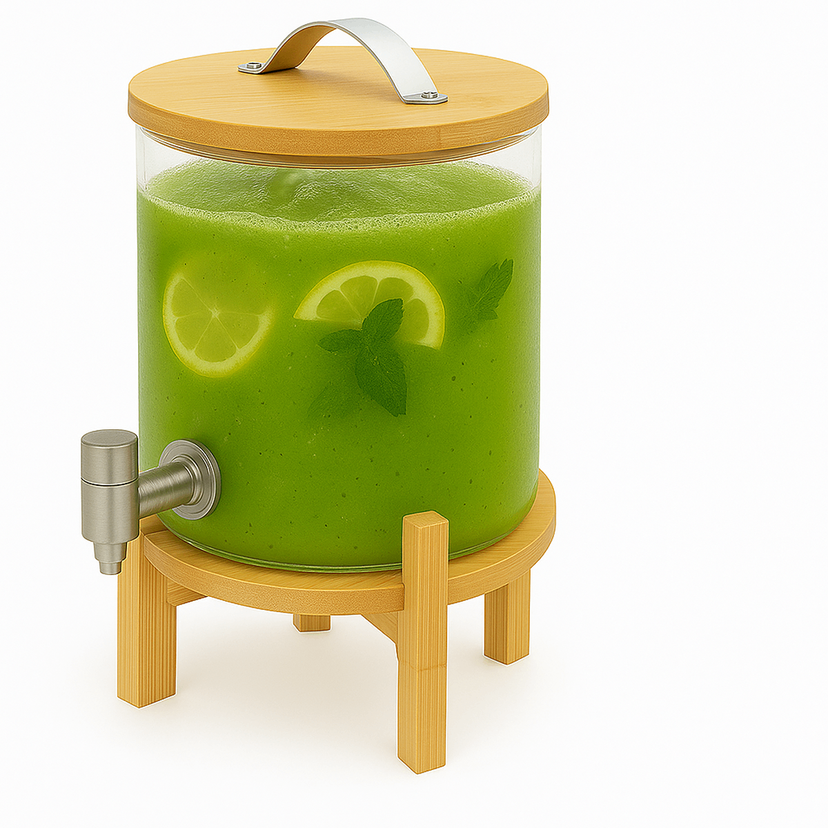 Serve drinks in style with our 5L Water Dispenser, featuring a sturdy bamboo lid, wooden stand, and stainless-steel tap. Ideal for home gatherings, office counters, or event buffets. The transparent container lets you showcase colorful beverages, fruits, or infused waters beautifully.