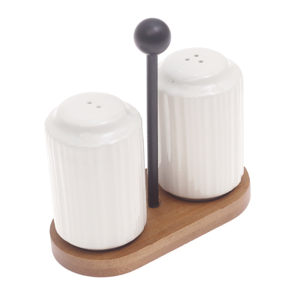 Ceramic Salt & Pepper Shaker Set with Wooden Stand