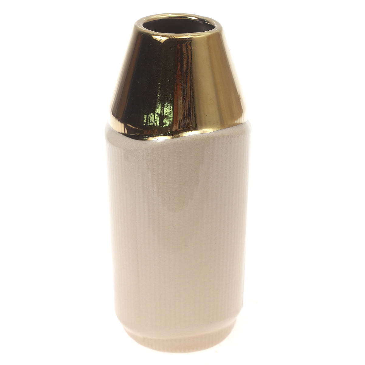 Ceramic Vase creamy L Gold & Off White 4.34 X 4.34 X 10.25 Inch TYX-018