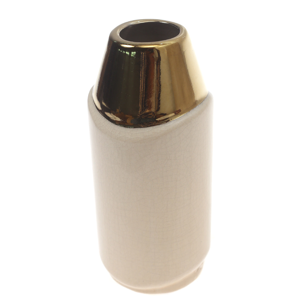 Ceramic Vase creamy S Gold & Off White 3.34 X 3.34 X 7.5 Inch TYX-019