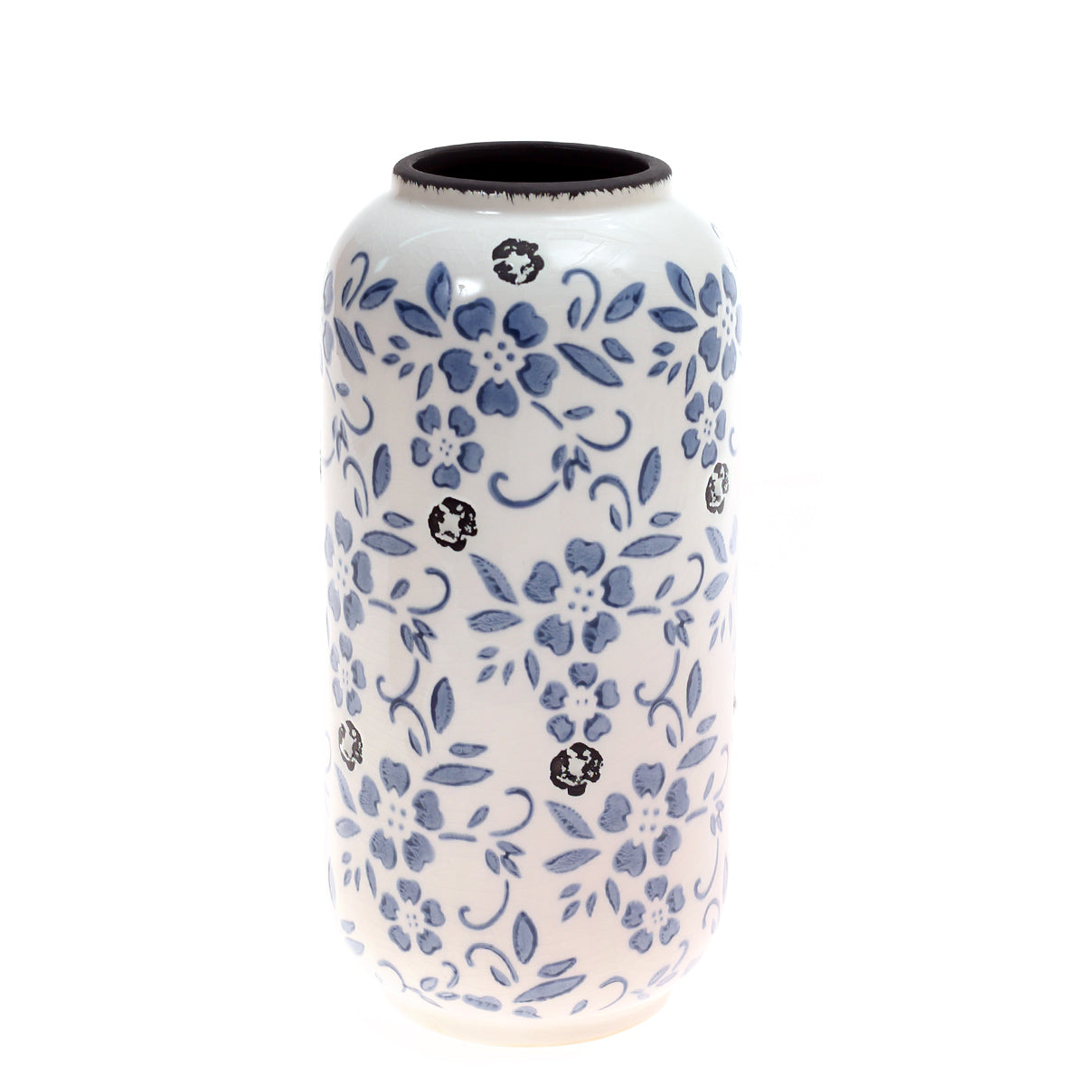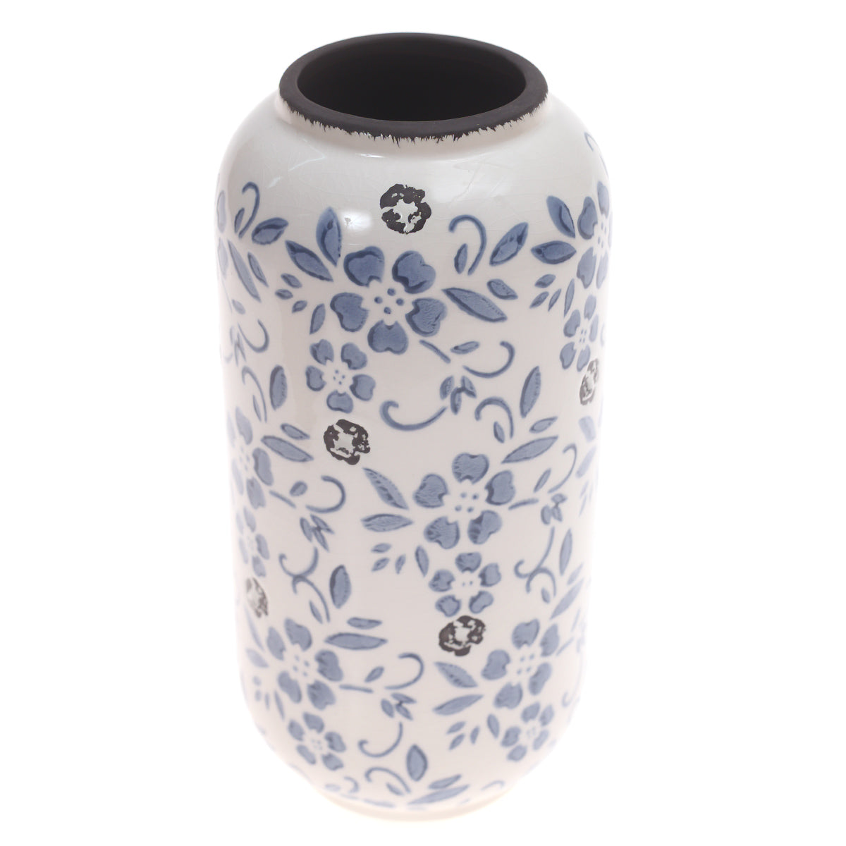 Ceramic Vase Flora Blue & White 4.85X4.85X9.5Inch CH-007