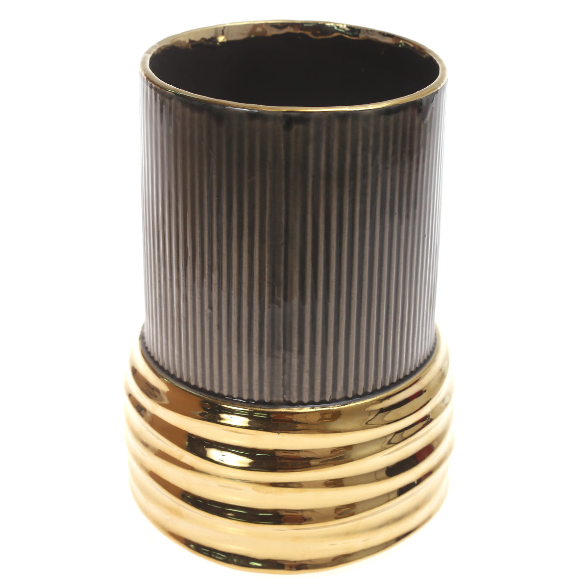 Ceramic Vase Gray L Gold & Green 7.17 X 7.17 X 9.25 Inch TYX-020