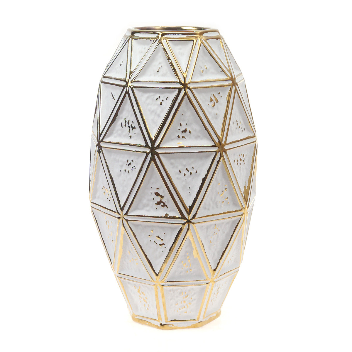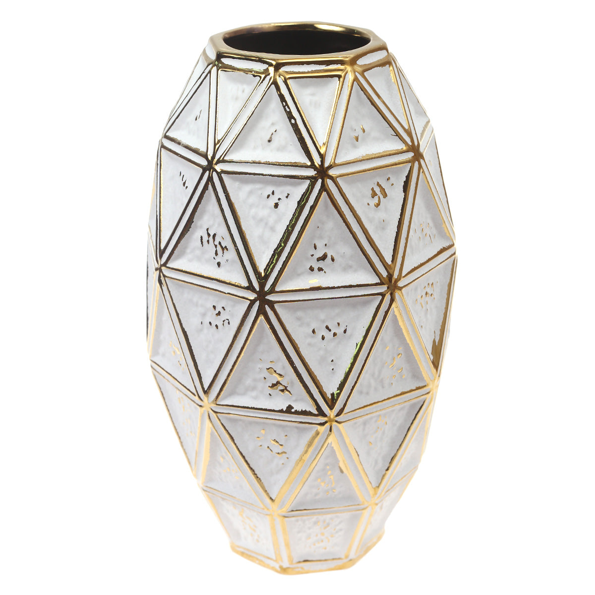 Ceramic Vase L Gold & White 7.17 X 7.17 X 12.5 Inch TYX-001