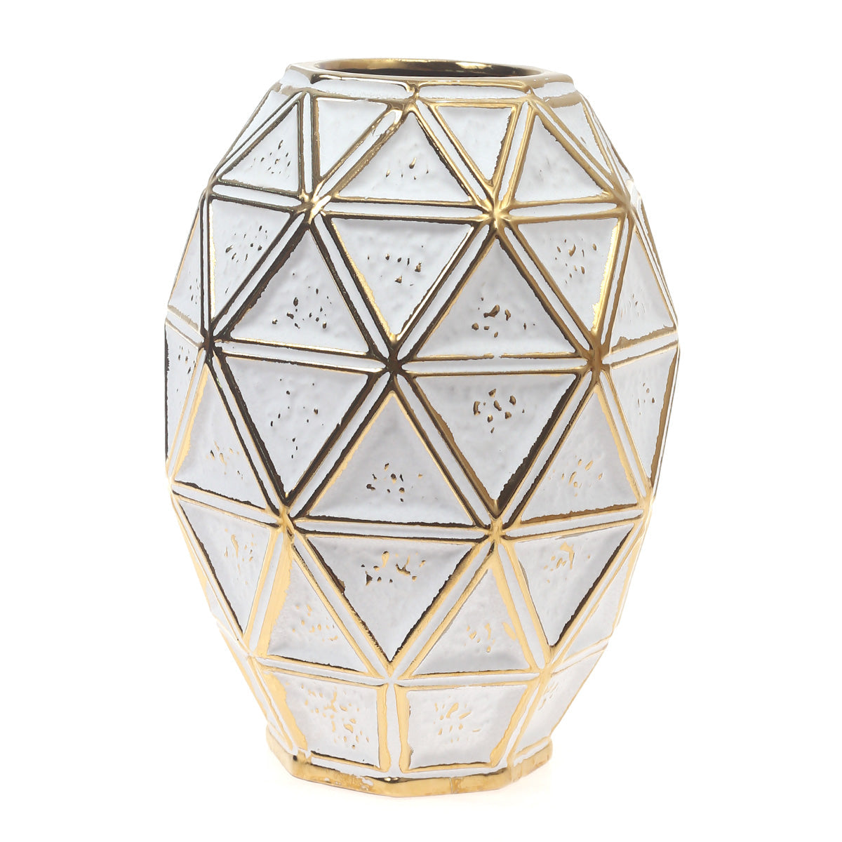Ceramic Vase M Gold & White 7 X 7 X 9.5 Inch TYX-002