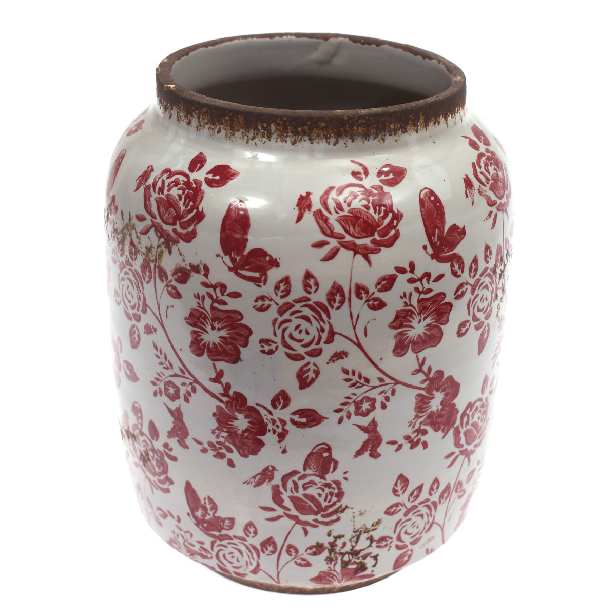Ceramic Vase Printed White & Red 9.67 X 9.67 X 12 Inch TYX028