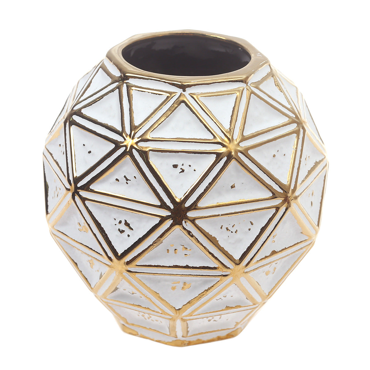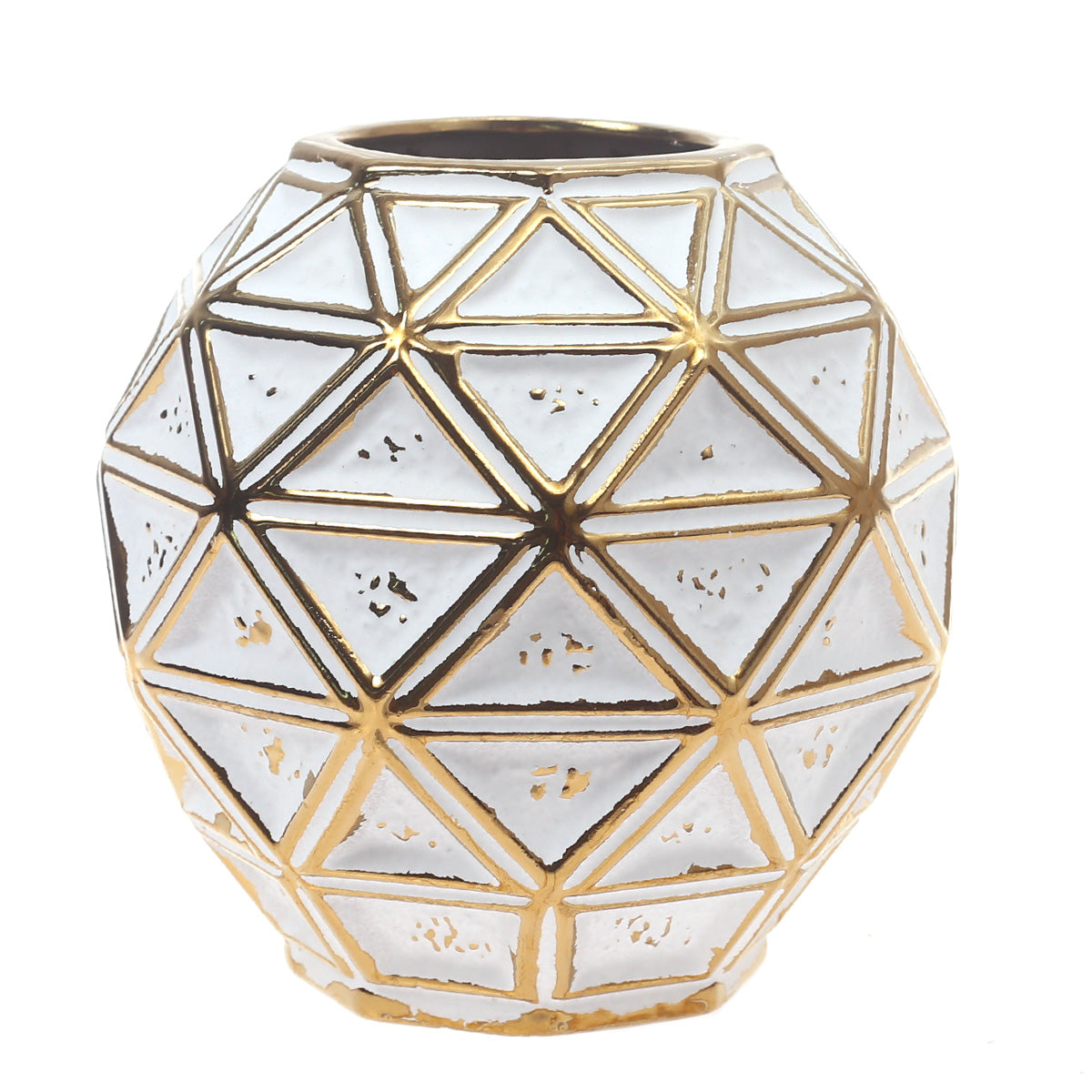 Ceramic Vase S Gold & White 7 X 7 X 7 Inch TYX-003