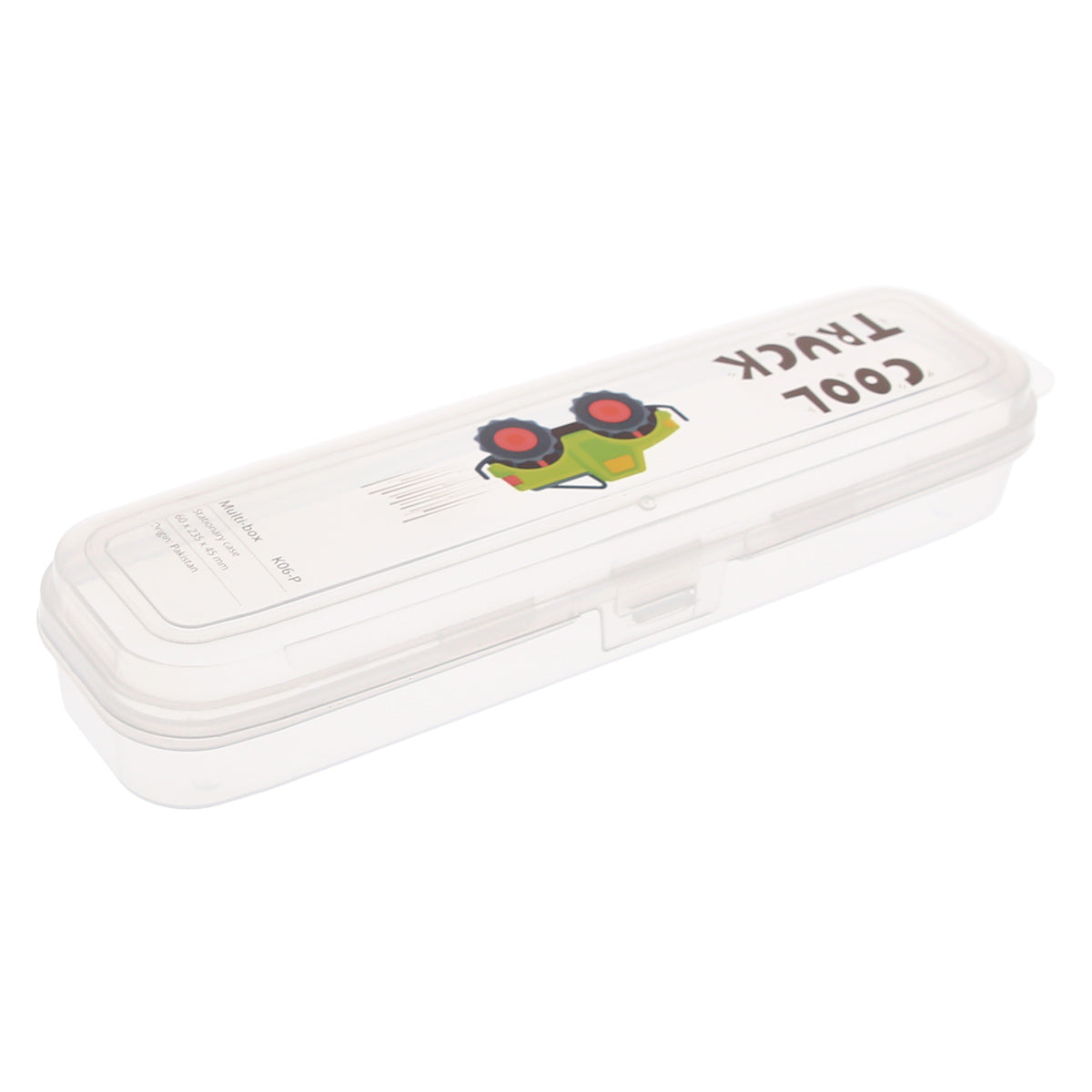 Keep your pens, pencils, and stationery neatly organized with the Cool Truck Multi-Box. Featuring a fun truck design on the lid, this slim and lightweight storage case is perfect for kids, students, and professionals alike. The transparent body allows you to easily view the contents, while the secure snap-lock keeps your items safe and prevents spills in your school bag, backpack, or desk drawer.