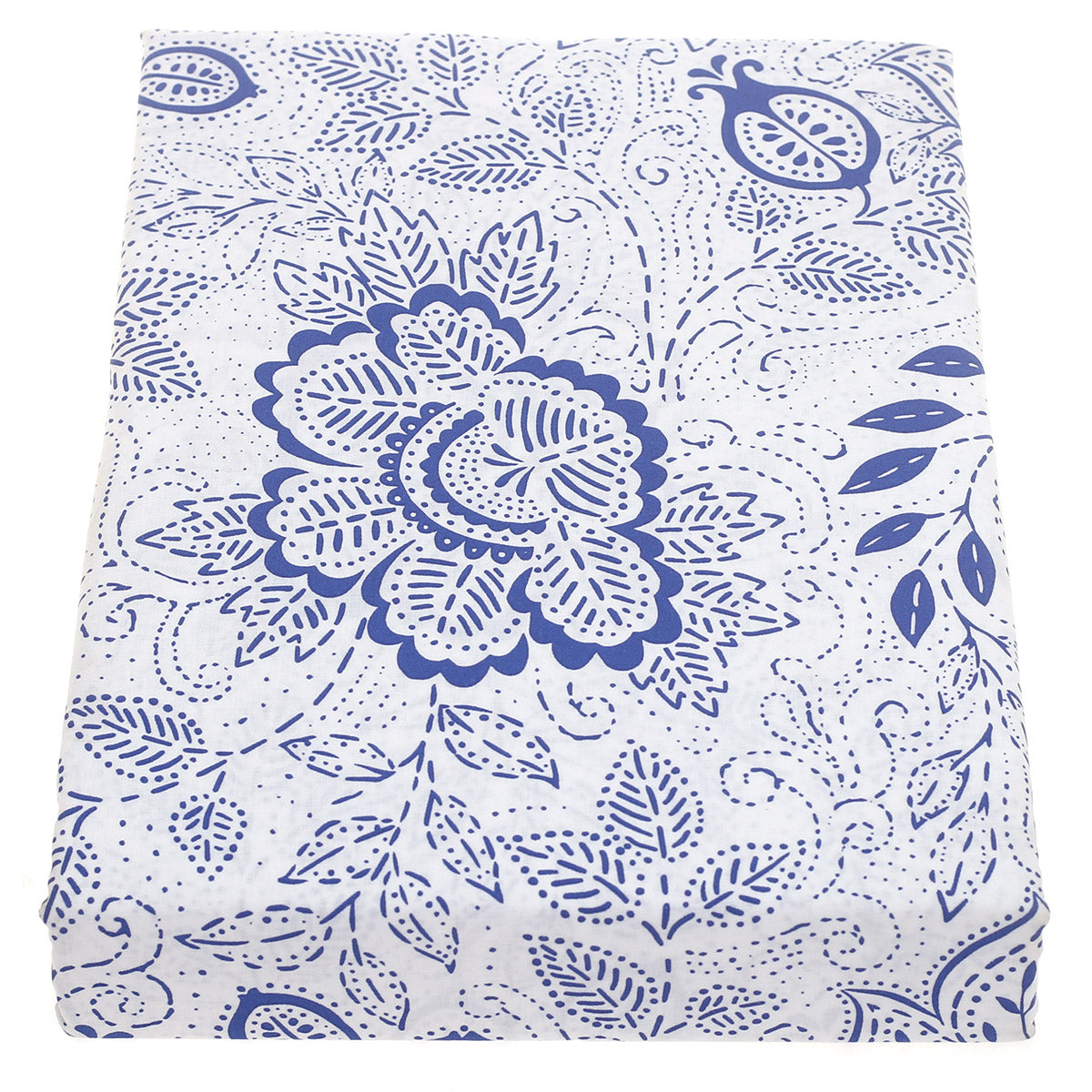 Double Bed Sheet Cotton Blue & White 96X102" Rotary Printing