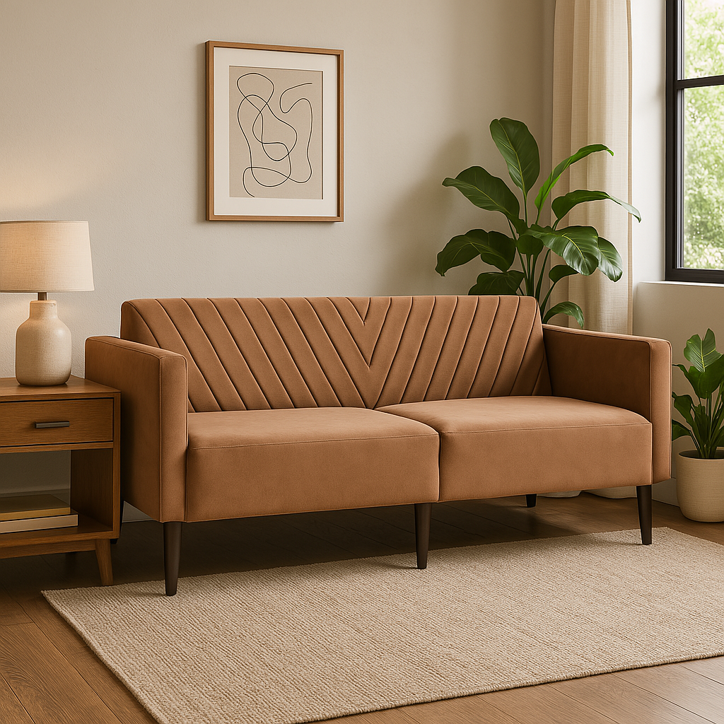 A modern addition to your living room withÊfully upholstered in high-quality jute fabric, solid beech wood legs in dark brown polish to brighten up your room.