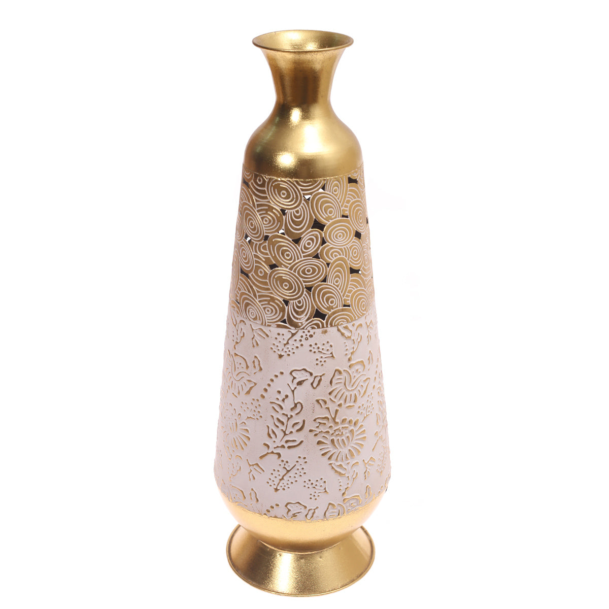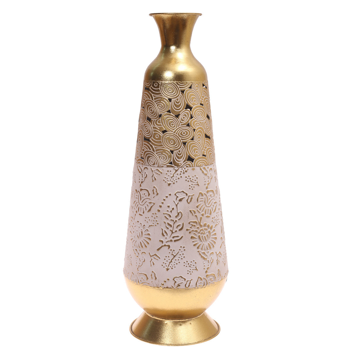 Floor Metal Vase M Gold & White 26 Inch Height Jc-02