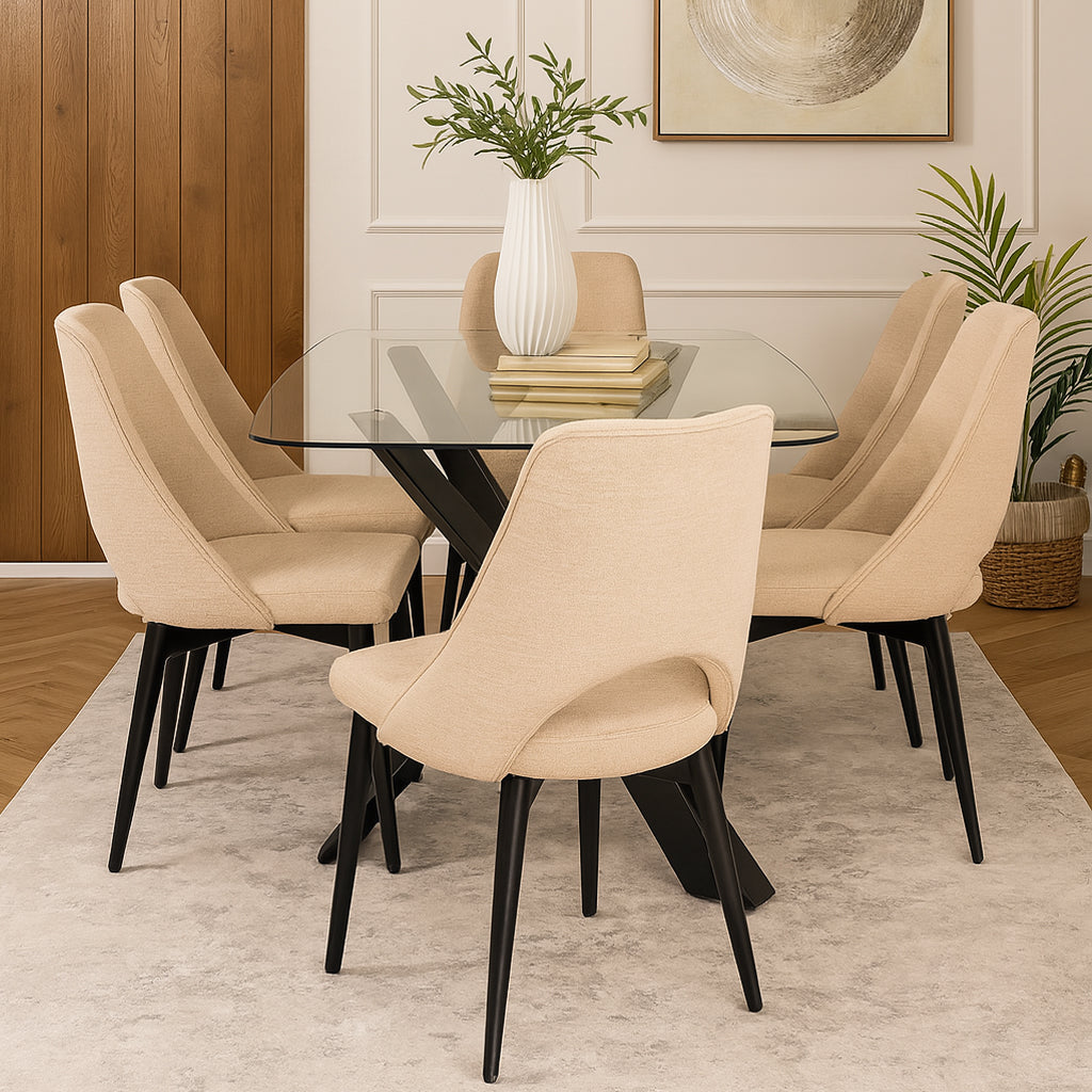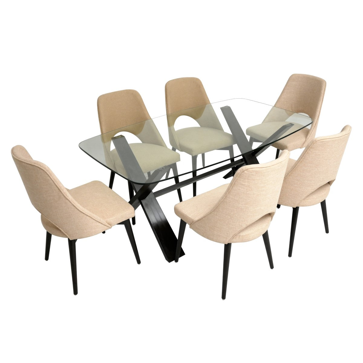 With comfortable and classy chairs for 6 persons, this spacious Wooden Arm Dining Table is perfect for various sized families. Its sturdy design adds a sense of luxury to your dining room. The tones of rustic brown finish let the beauty of wood grains shine.Ê