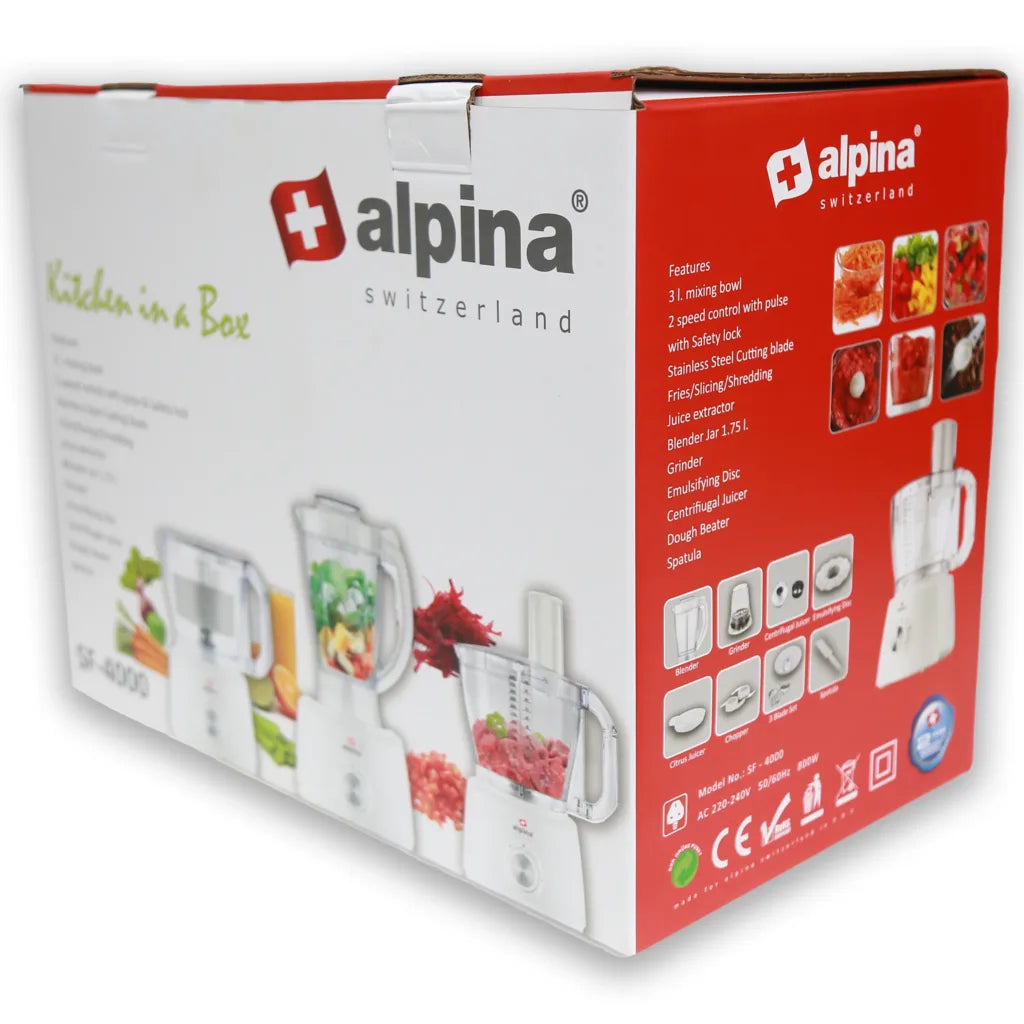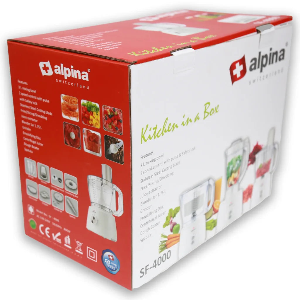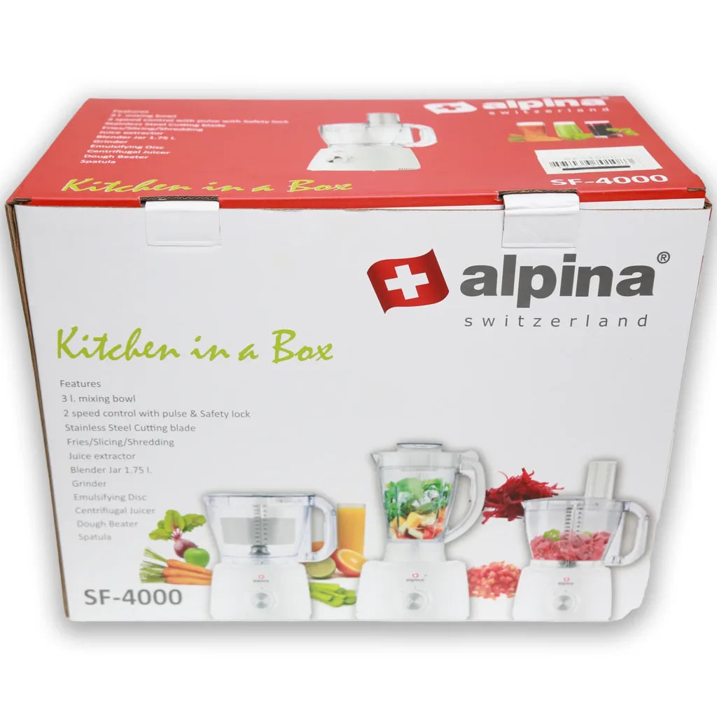Experience the ultimate all-in-one kitchen assistant with the Alpina SF-4000-SB Food Factory. Designed for convenience, versatility, and performance, this multifunctional appliance handles everything from chopping and blending to grinding and slicing, making meal preparation effortless.