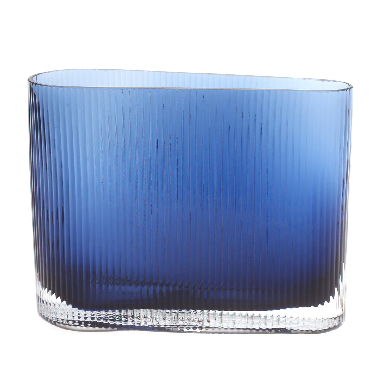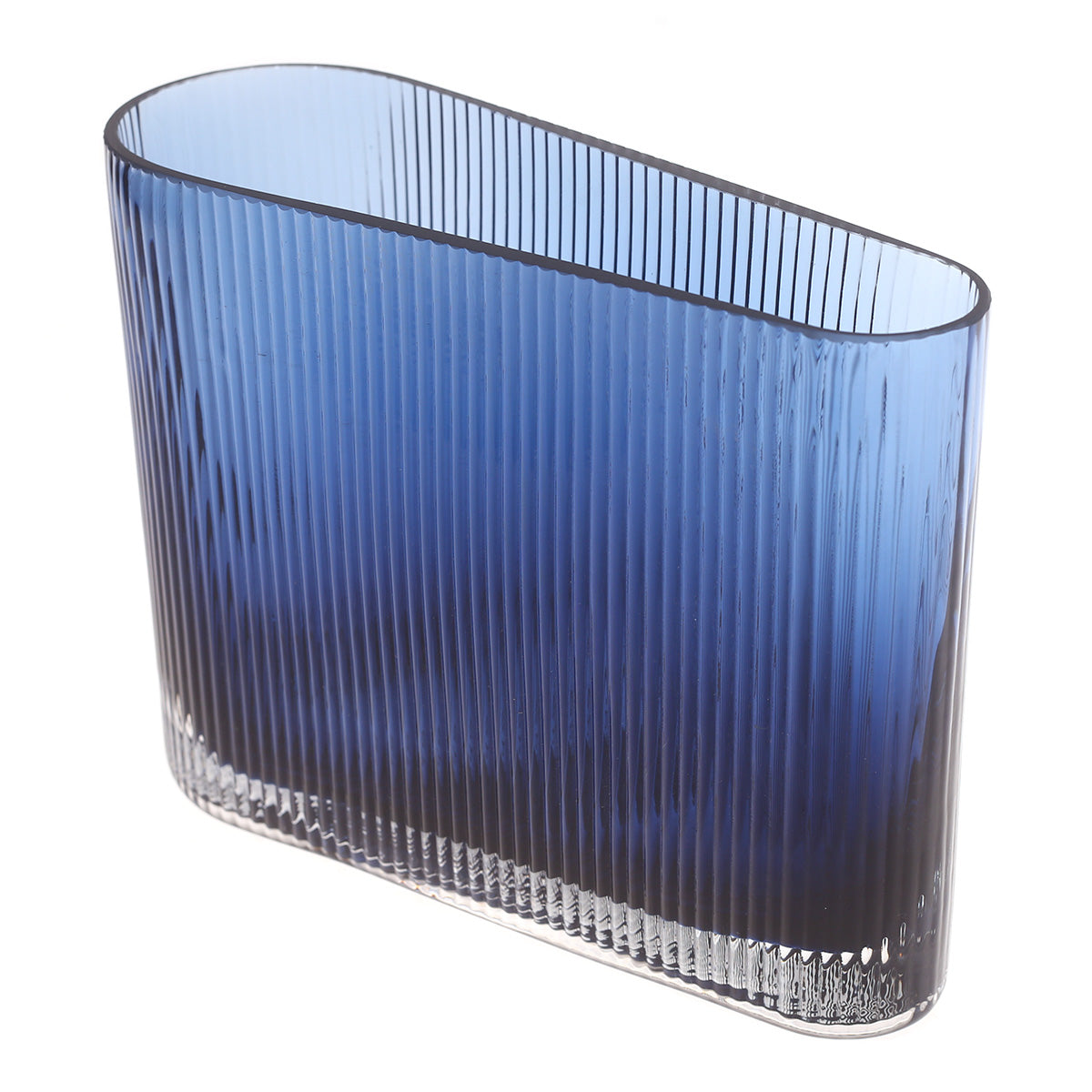 Glass Vase L Blue 11.5 X 3.5 X 7.5 Inch HY-045