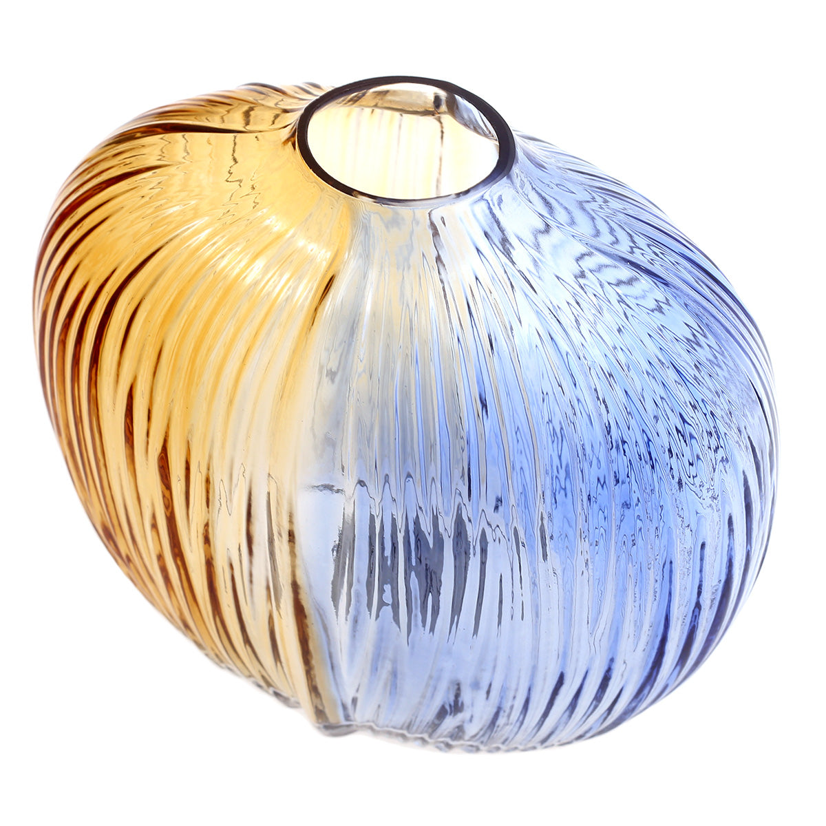 Glass Vase L Blue & Gold 12X4.5X8.5Inch HY-015