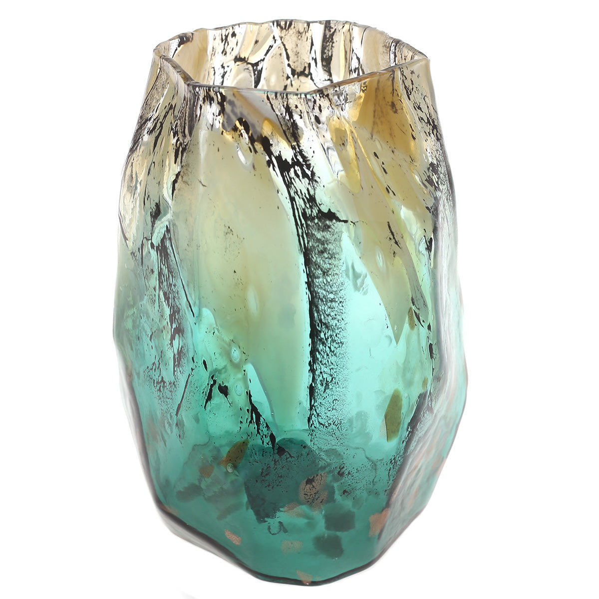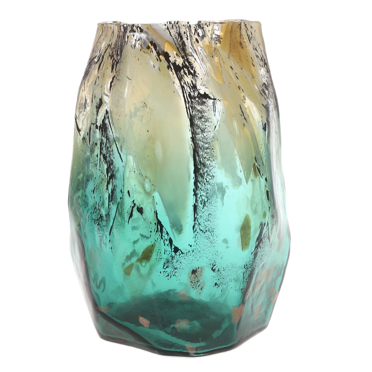 Glass Vase M Gold & Green 6.5X6.5X9Inch HY-032