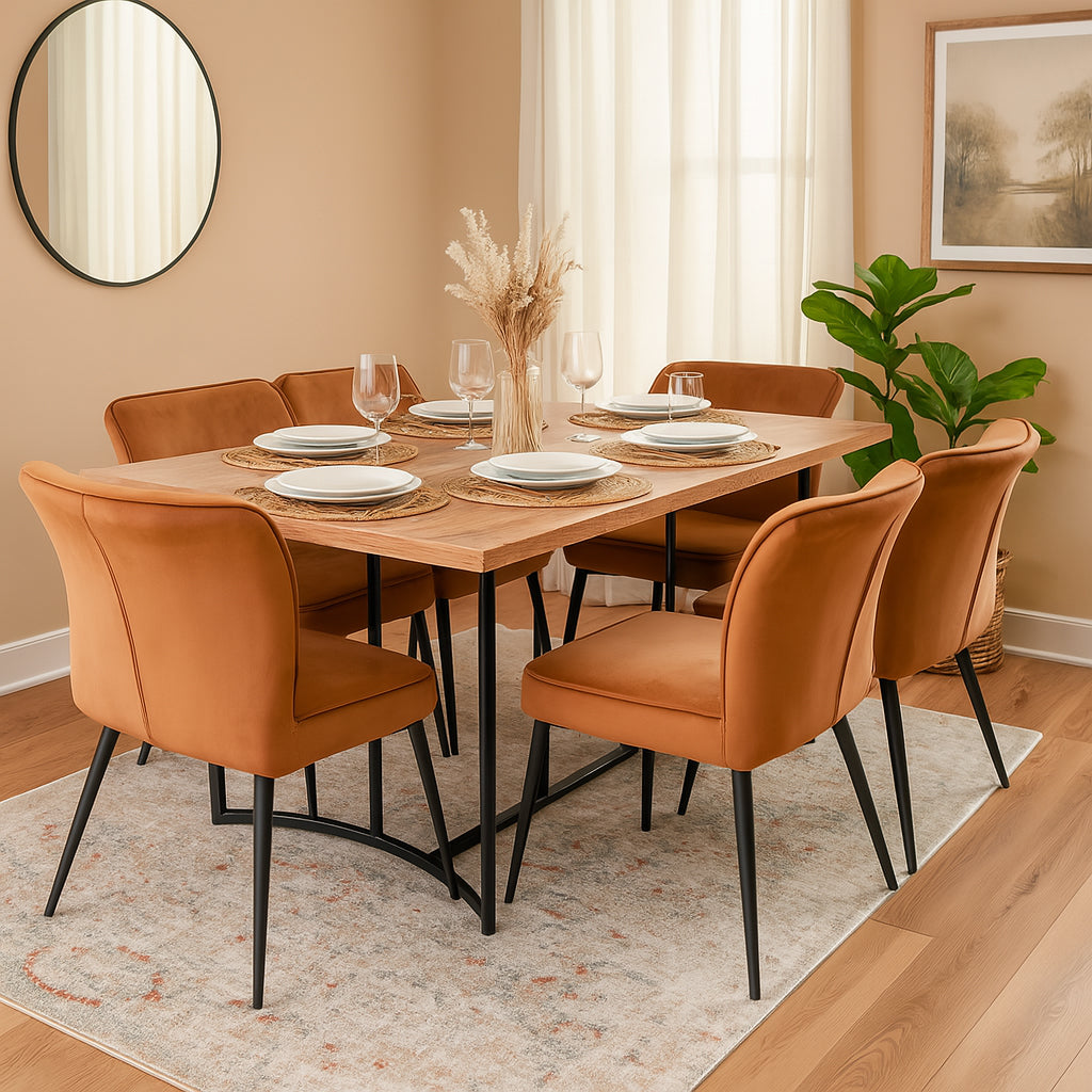 With comfortable and classy chairs for 6 persons, this spacious Wooden Arm Dining Table is perfect for various sized families. Its sturdy design adds a sense of luxury to your dining room. The tones of rustic brown finish let the beauty of wood grains shine.Ê