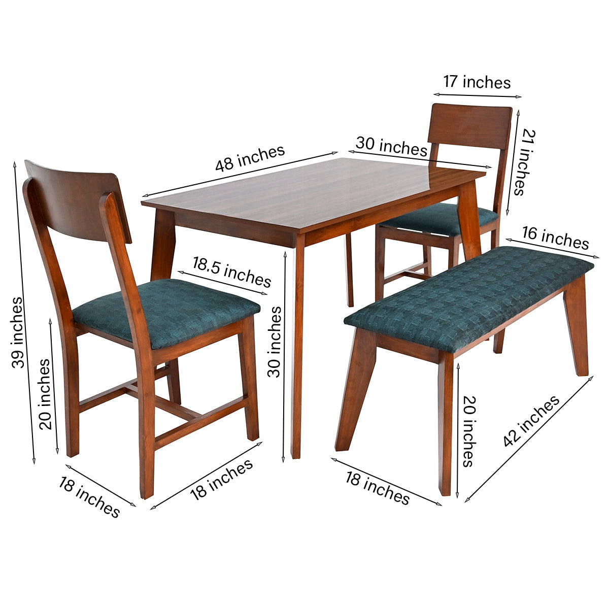 Harry 4-person dining table is our classy yet sleek dining table with 2 chairs & 1 Bench. Its compact and sturdy design makes it a perfect fit for your dining room.Ê