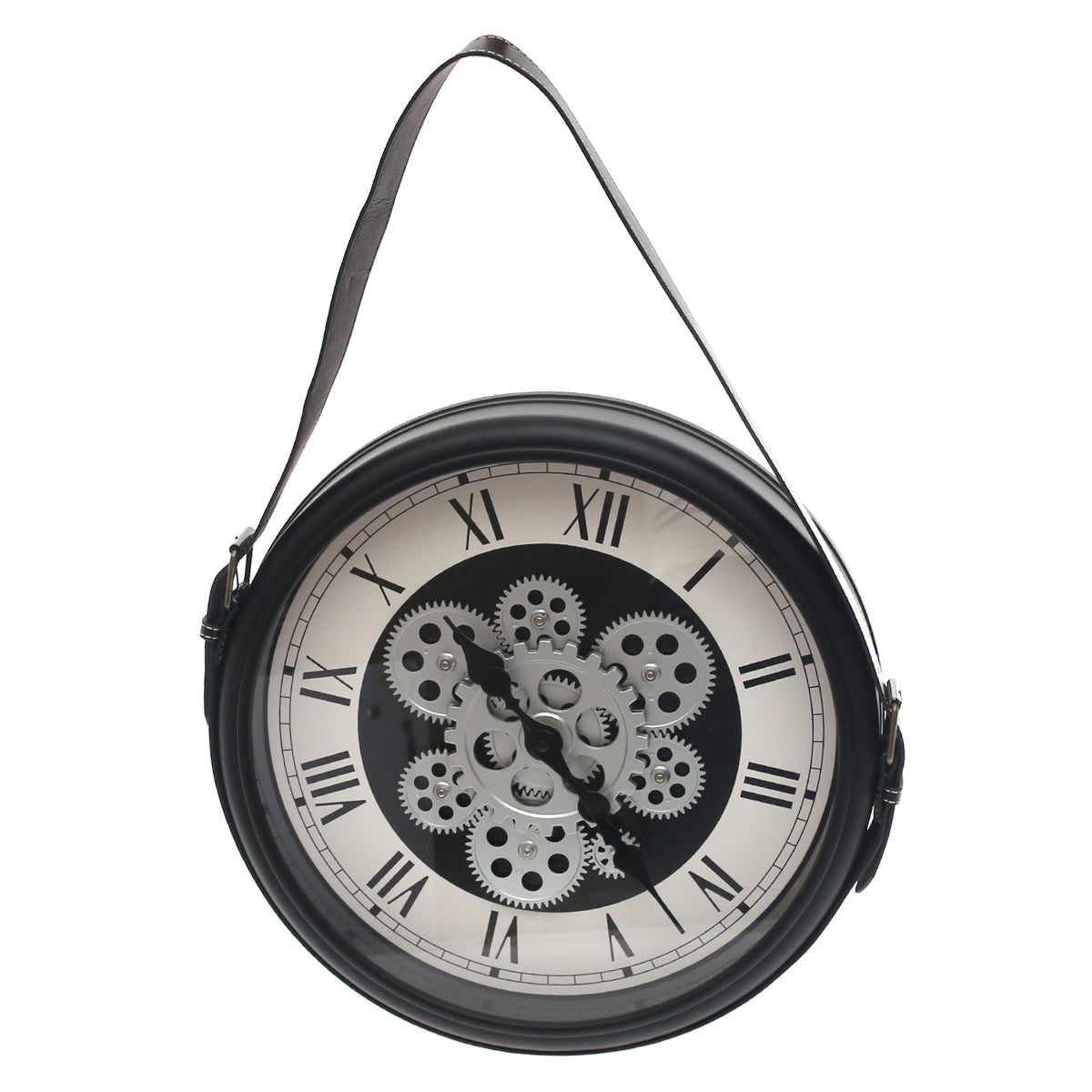 Industrial Gear Design Black & White Wall Clock with Hanging Strap (Model 191)