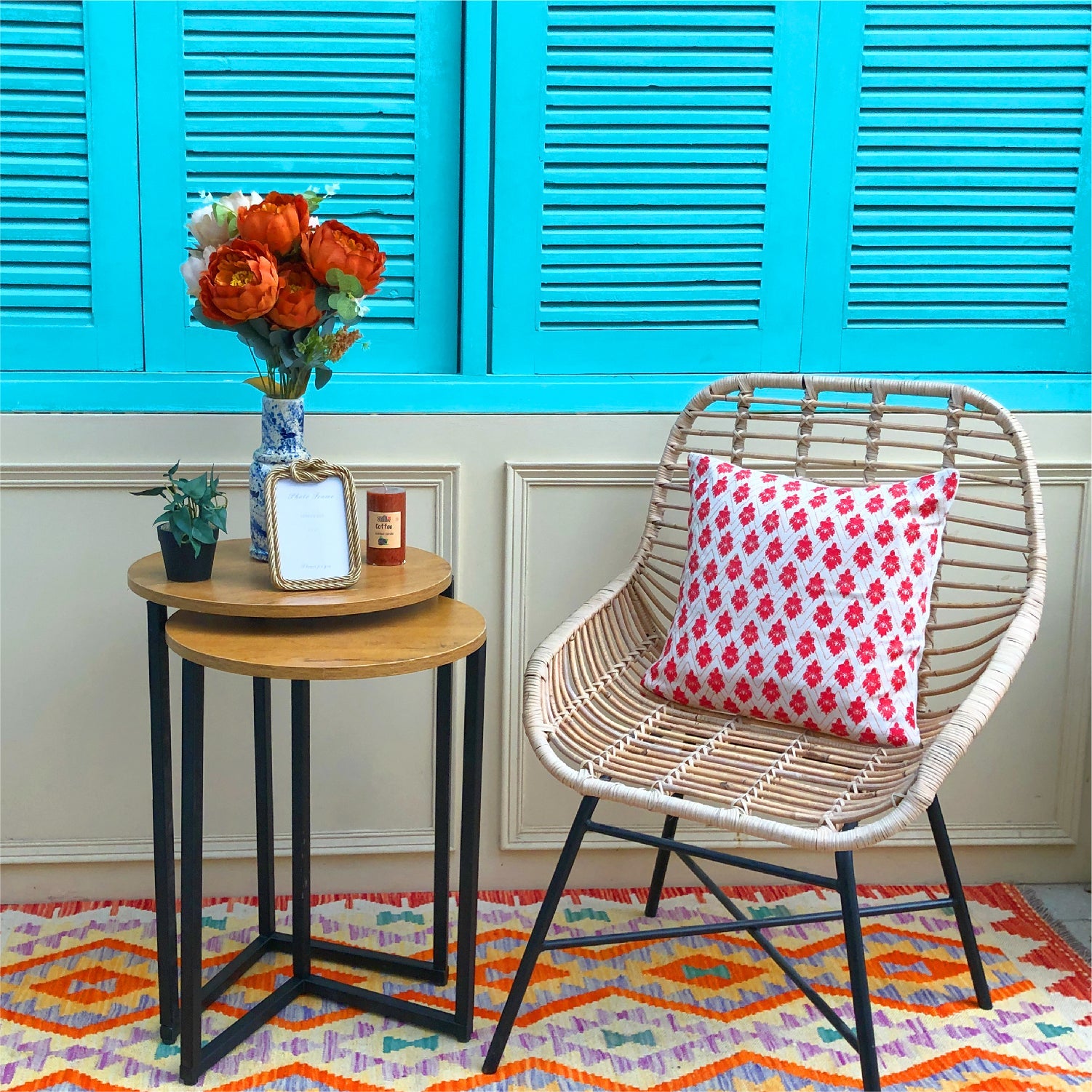 Use the nesting table separately, or together or slide the smaller one under the larger one to save space. Easy to assemble, move around and match with other furnishings.
