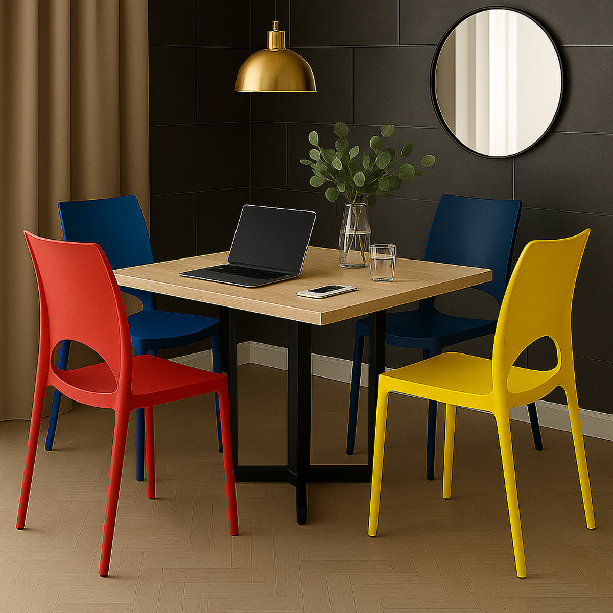 Leah Dining Table with 4 Cafeteria Chair is our classy yet sleek dining table with 4 chairs. Its compact and sturdy design makes it a prefect fit for your dining room.Ê