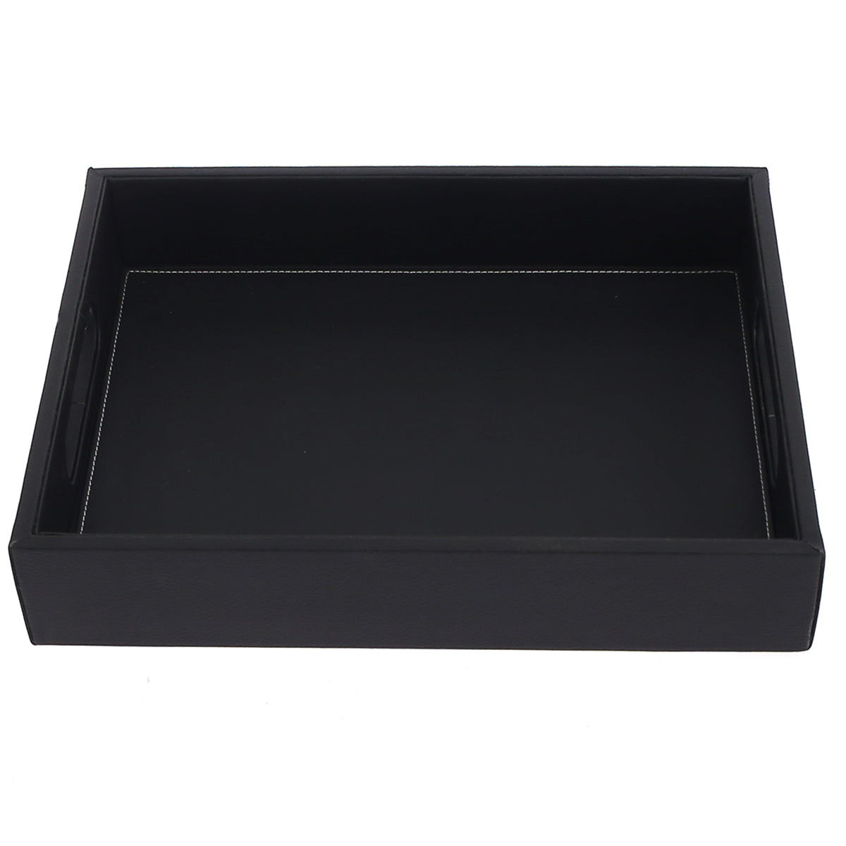 This high-quality leatherette serving tray in stylish Black color is the perfect addition to your home decor. Its compatible size makes it versatile for any occasion, providing both convenience and sophistication. Treat yourself to an elevated serving experience with this elegant tray.
