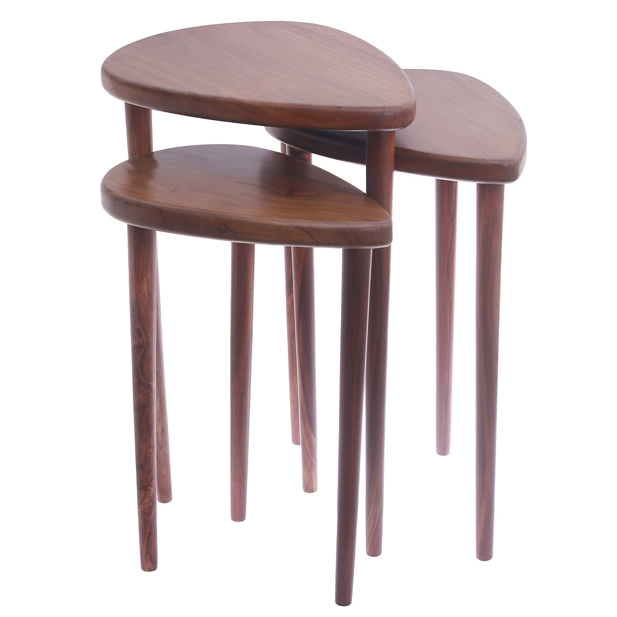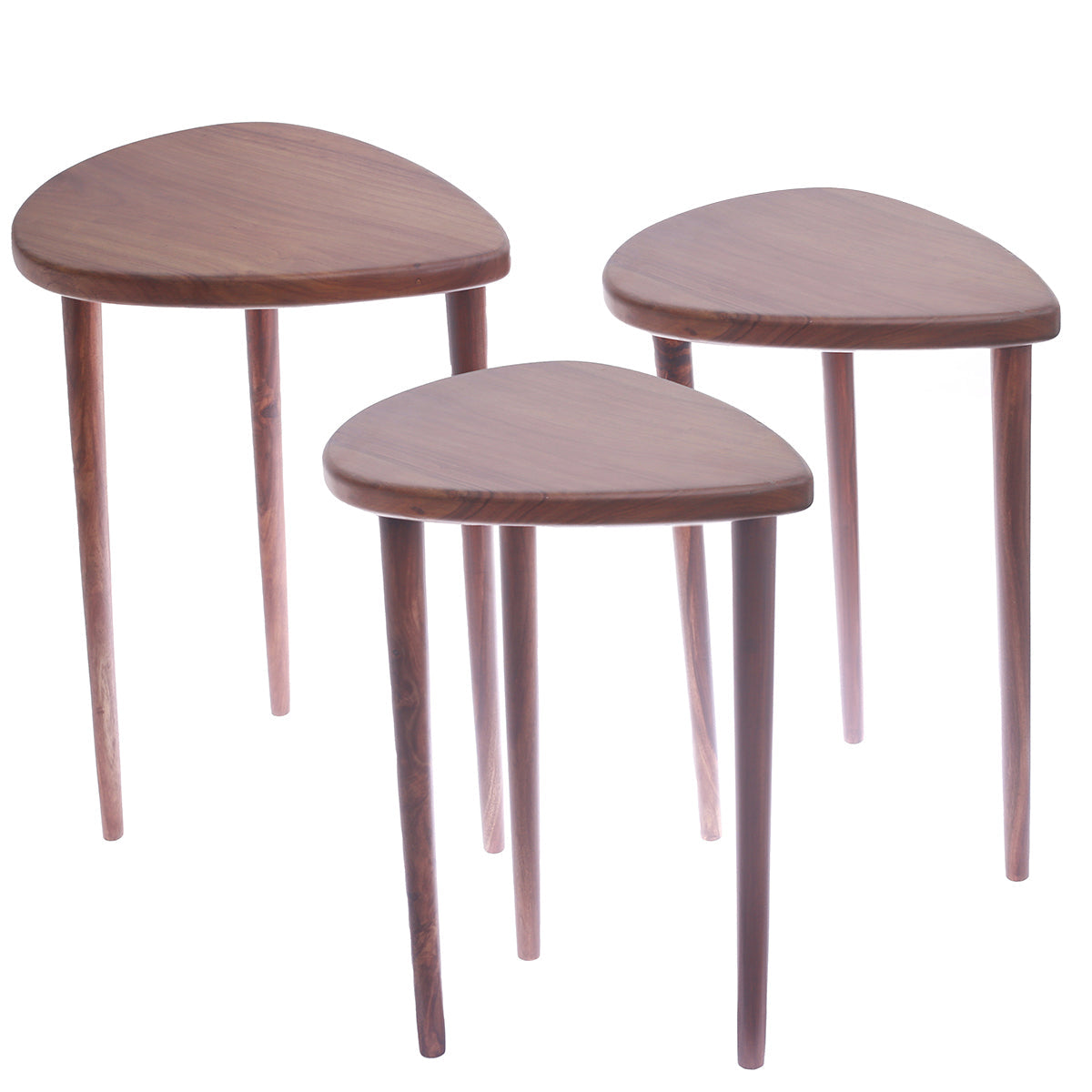 Stylish beech wood nesting tables with vibrant digital prints. Set of 3 for versatile use in any room. Perfect addition to any modern home.