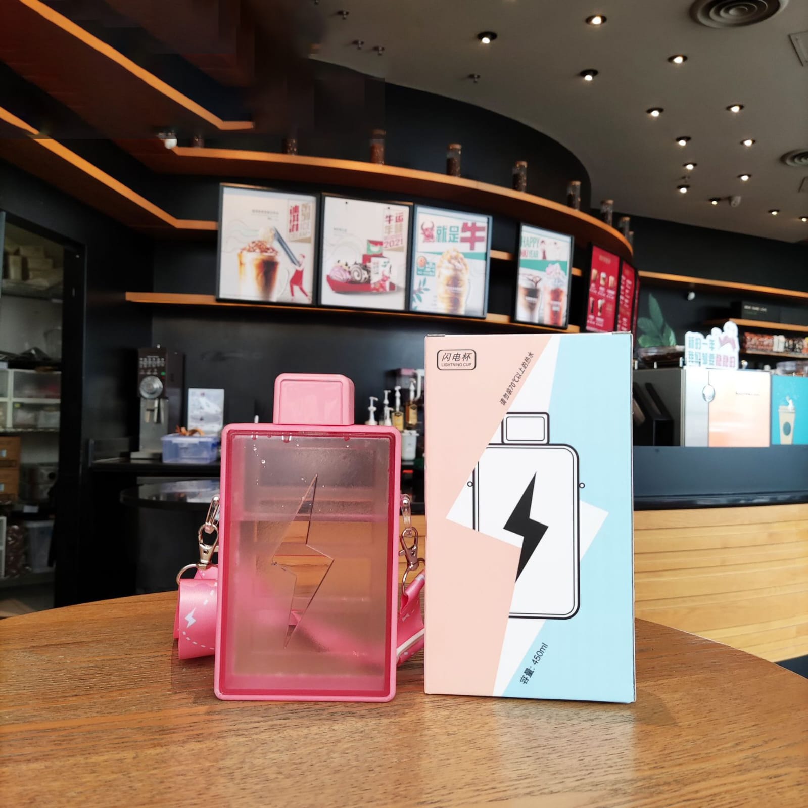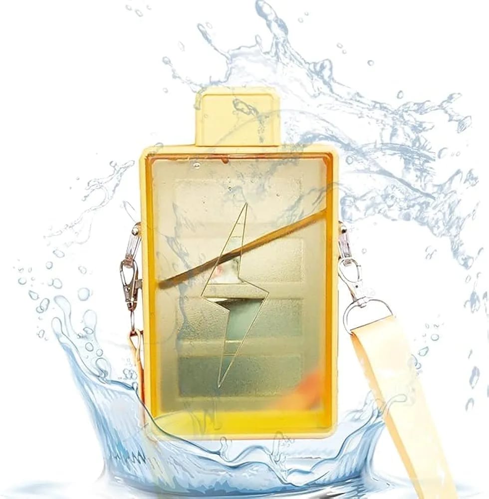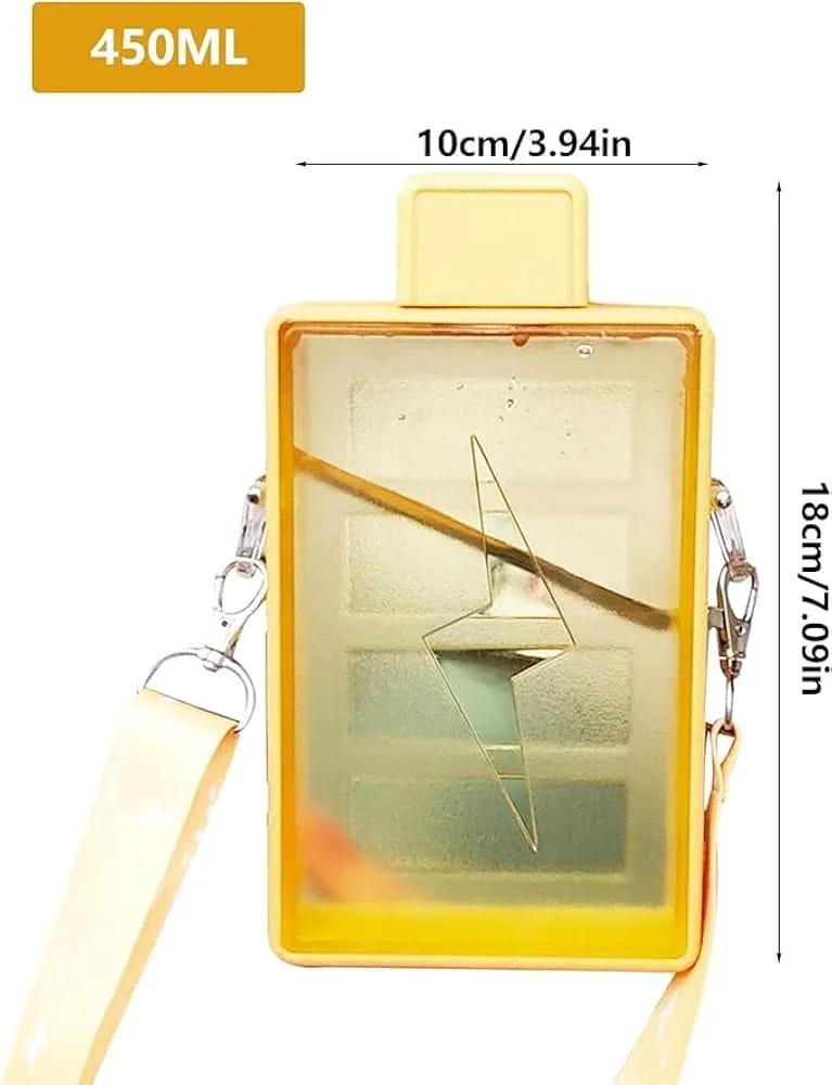Stay hydrated in style with this trendy rectangular water bottle featuring a bold lightning bolt design. Its compact size and detachable strap make it perfect for on-the-go use.
