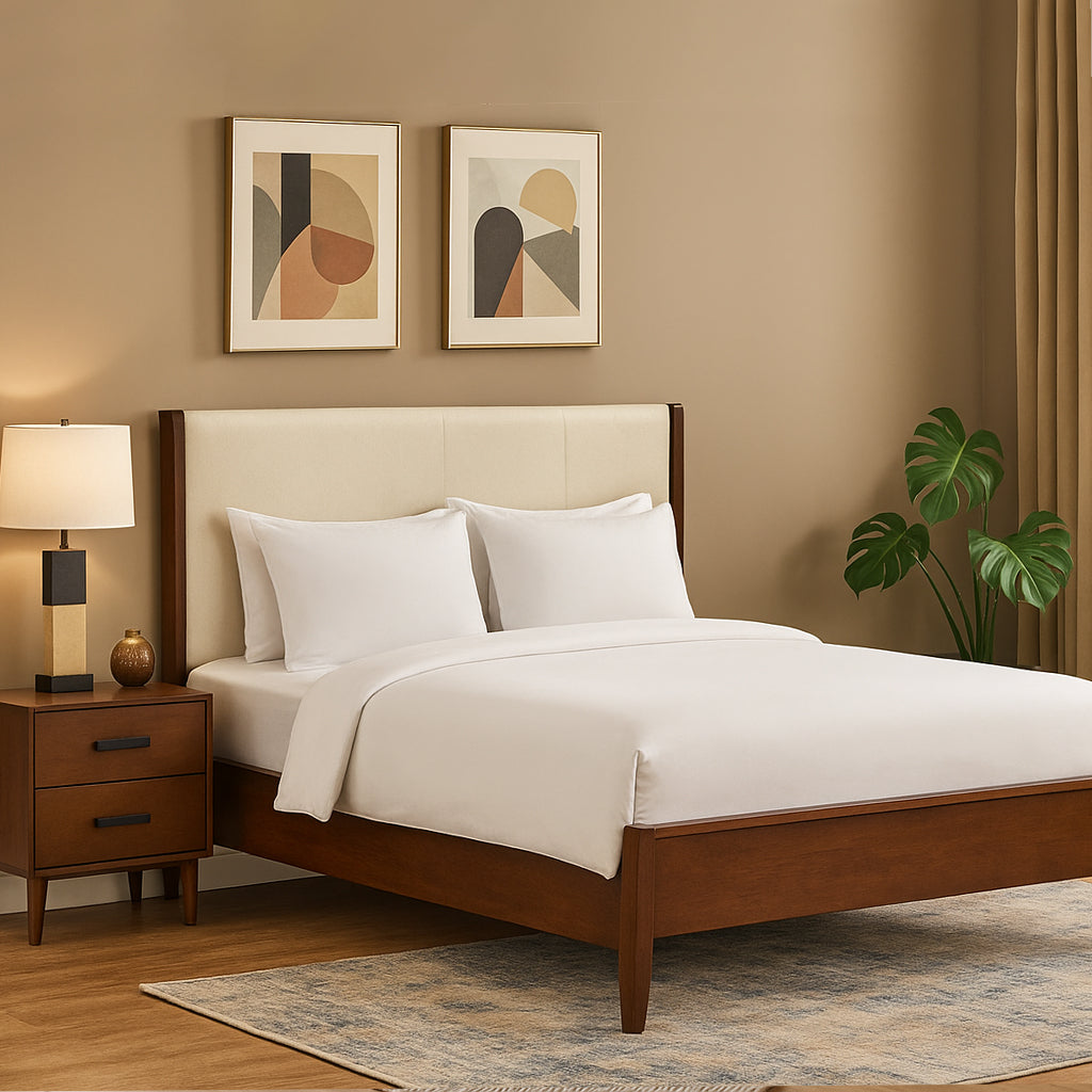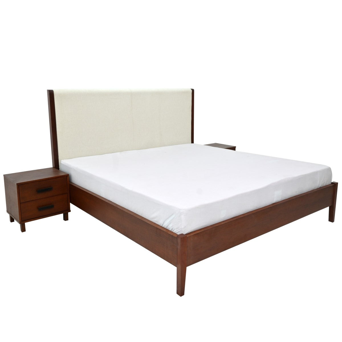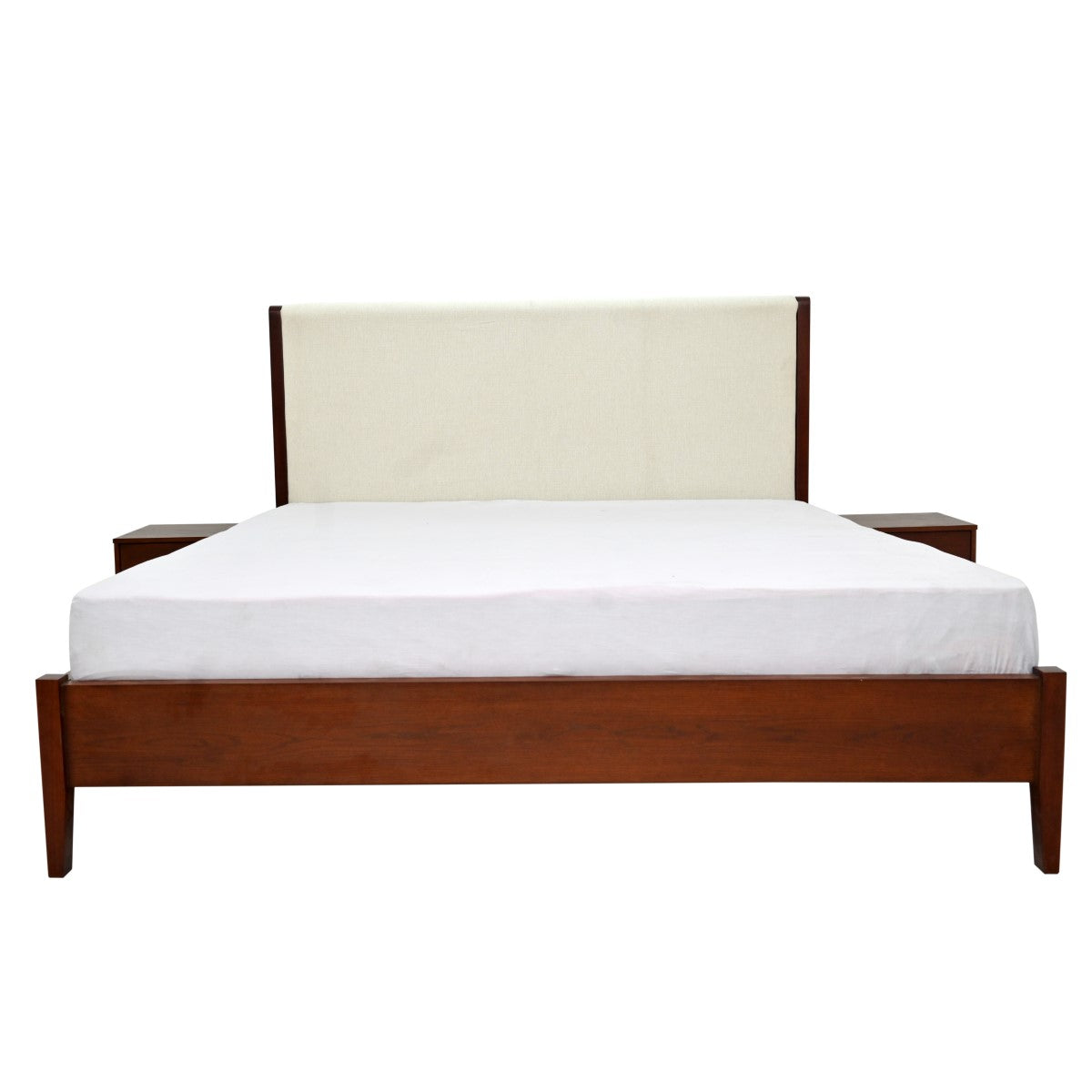 Marlin Bed made in Sheesham solid wood and Sheesham ply with an upholstered Headboard