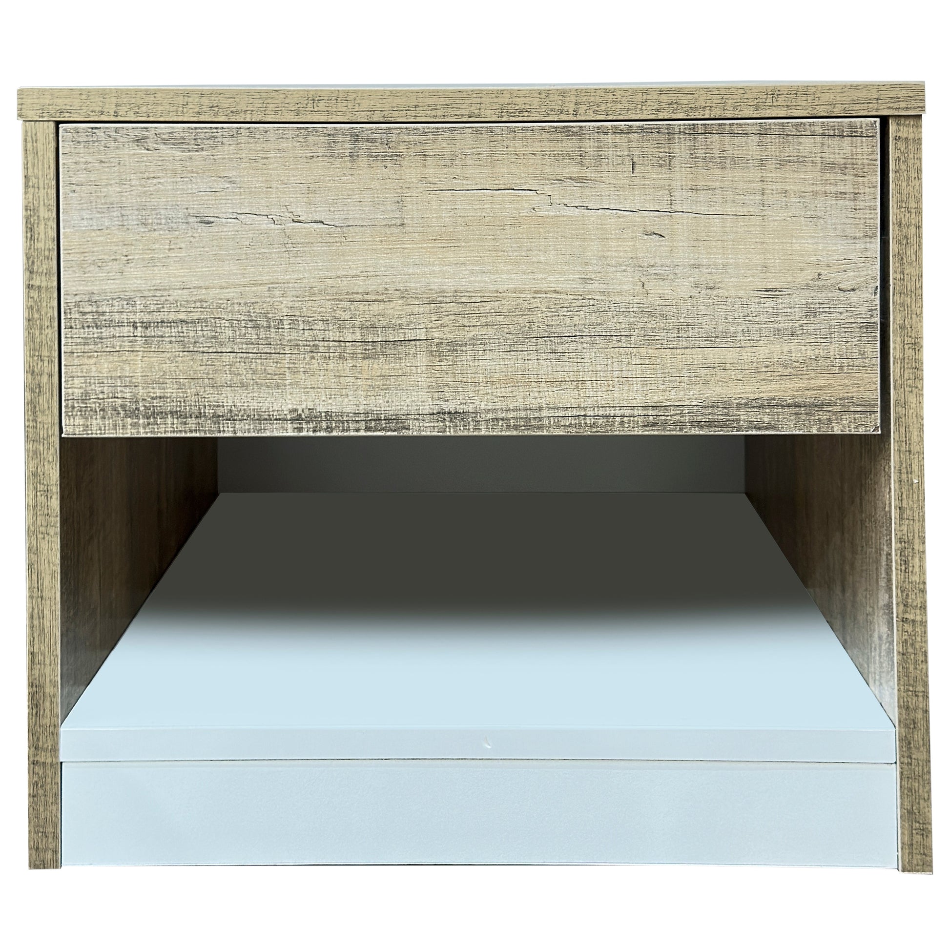 The Mike Side Table blends clean lines with rustic charm, making it the perfect companion for your bed or sofa. Featuring a natural wood-grain finish with a contrasting white base, this table offers both visual appeal and practical storage. A spacious drawer keeps clutter out of sight, while the open bottom shelf provides easy access to books, baskets, or dŽcor.