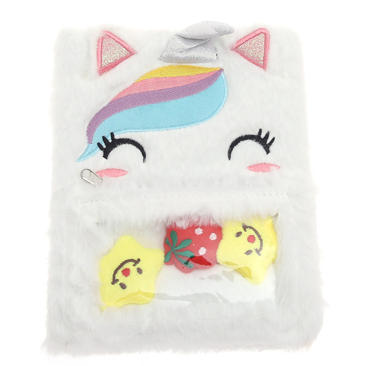 Mini Furry Unicorn Notebook for Kids | Plush Cover | Star Confetti Window | 5062