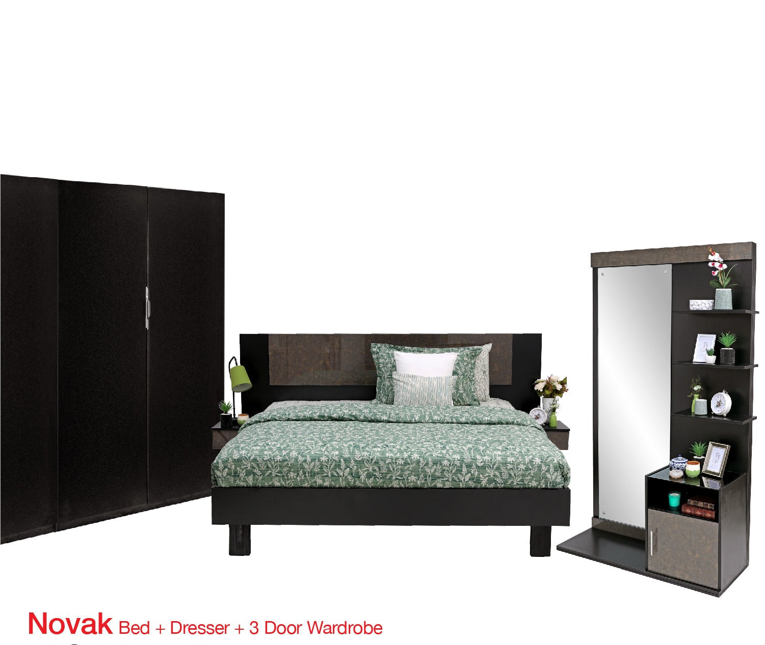 Novak - Bed, Dresser & 3 Door wardrobe