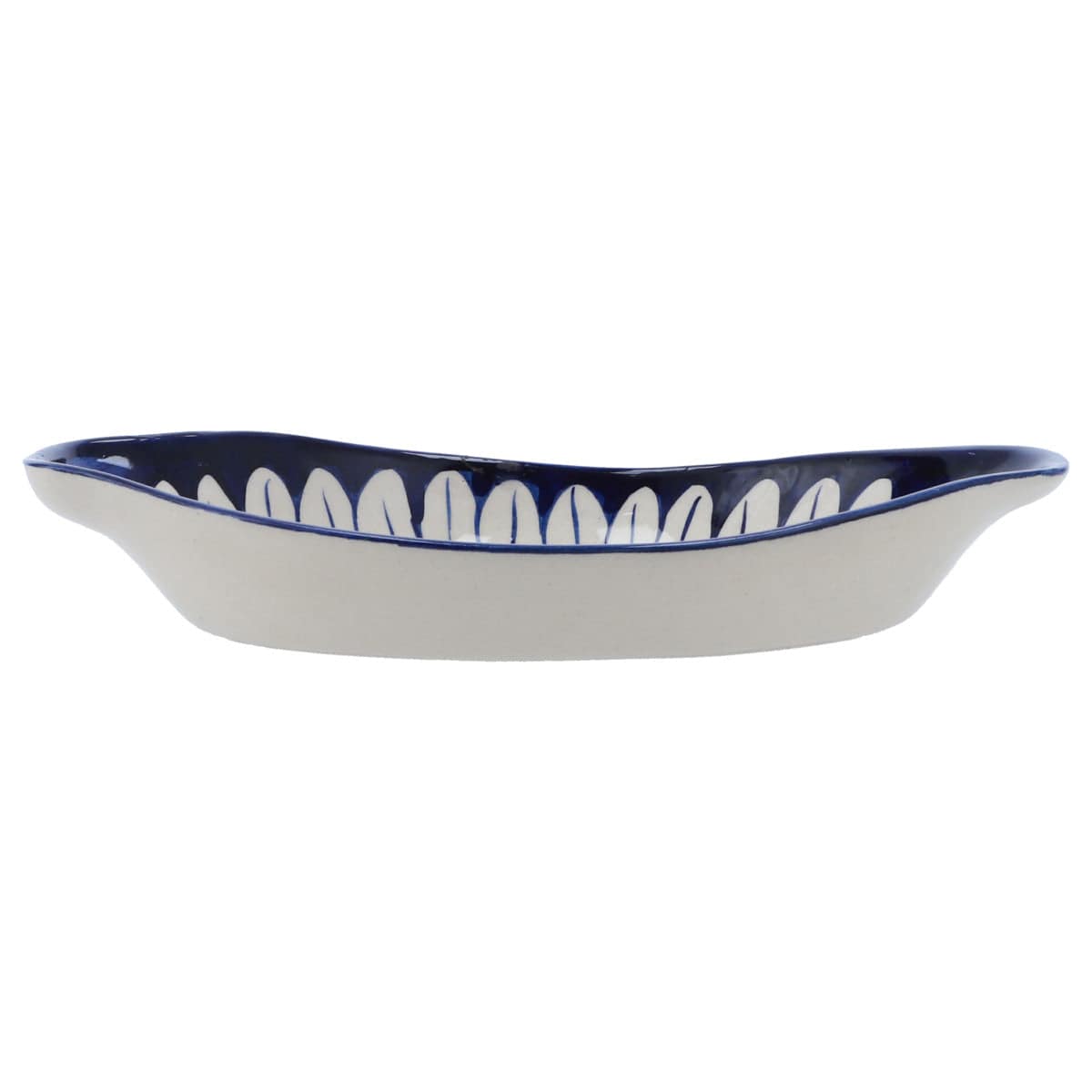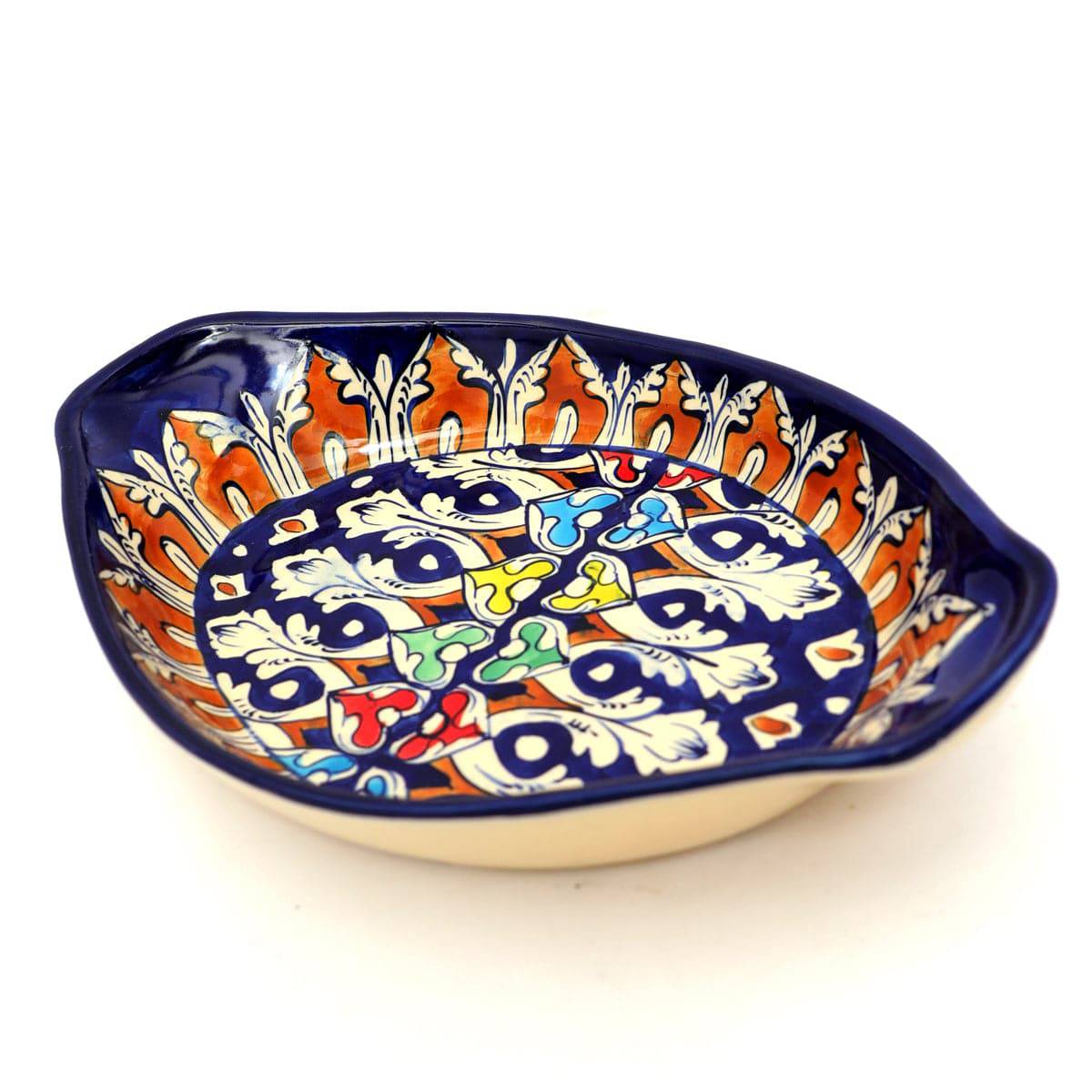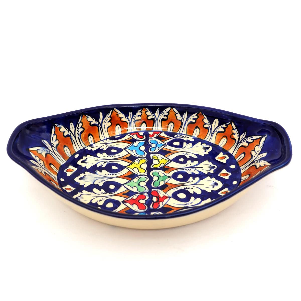 Enthralling oval-shaped platter with intricate floral pattern in multani blue tile design work. A traditionally pleasant way of serving dishes in parties and dawats.