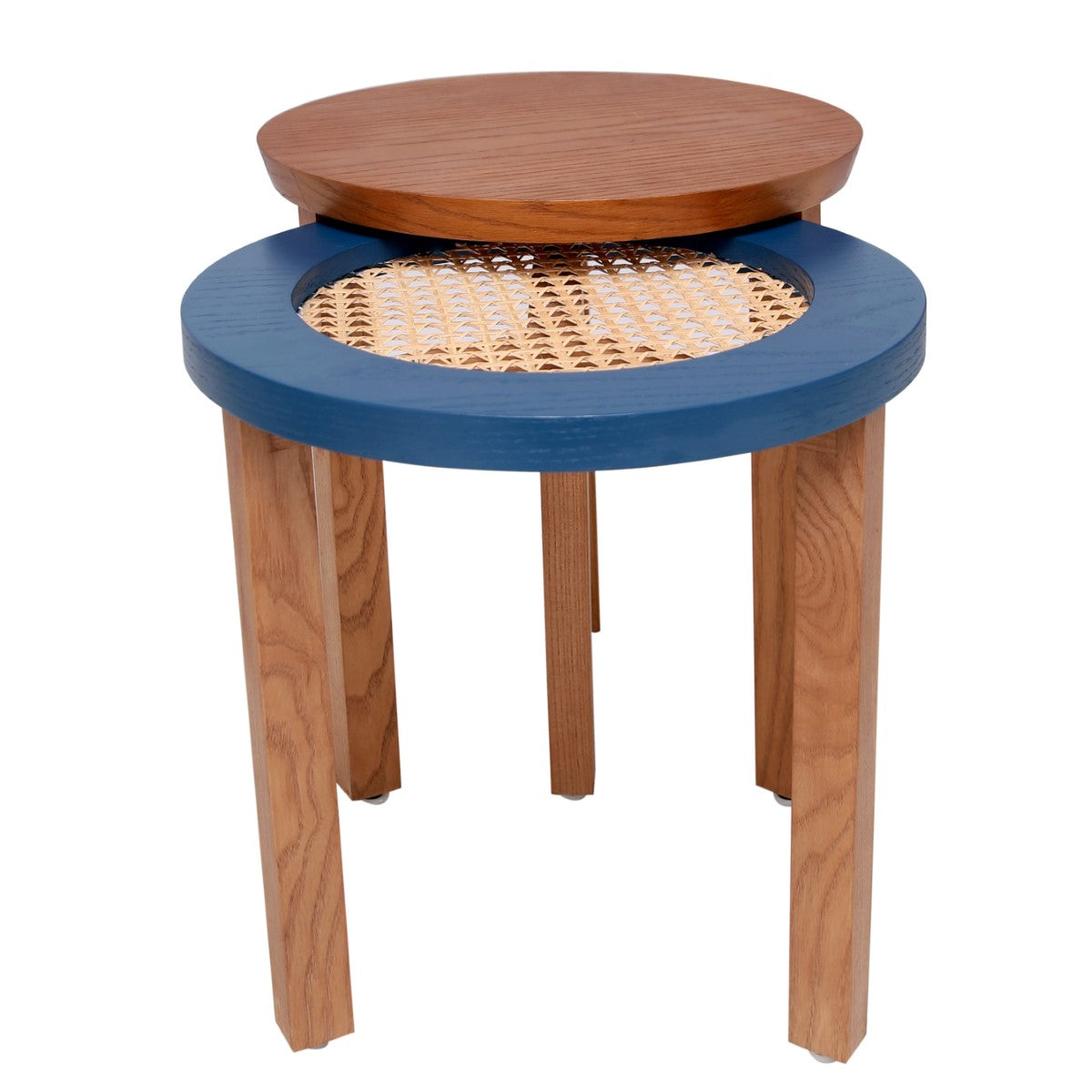 Stylish beech wood nesting tables with vibrant digital prints. Set of 2 for versatile use in any room. Perfect addition to any modern home.