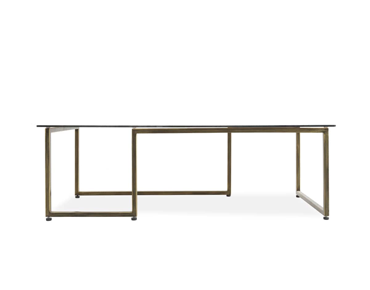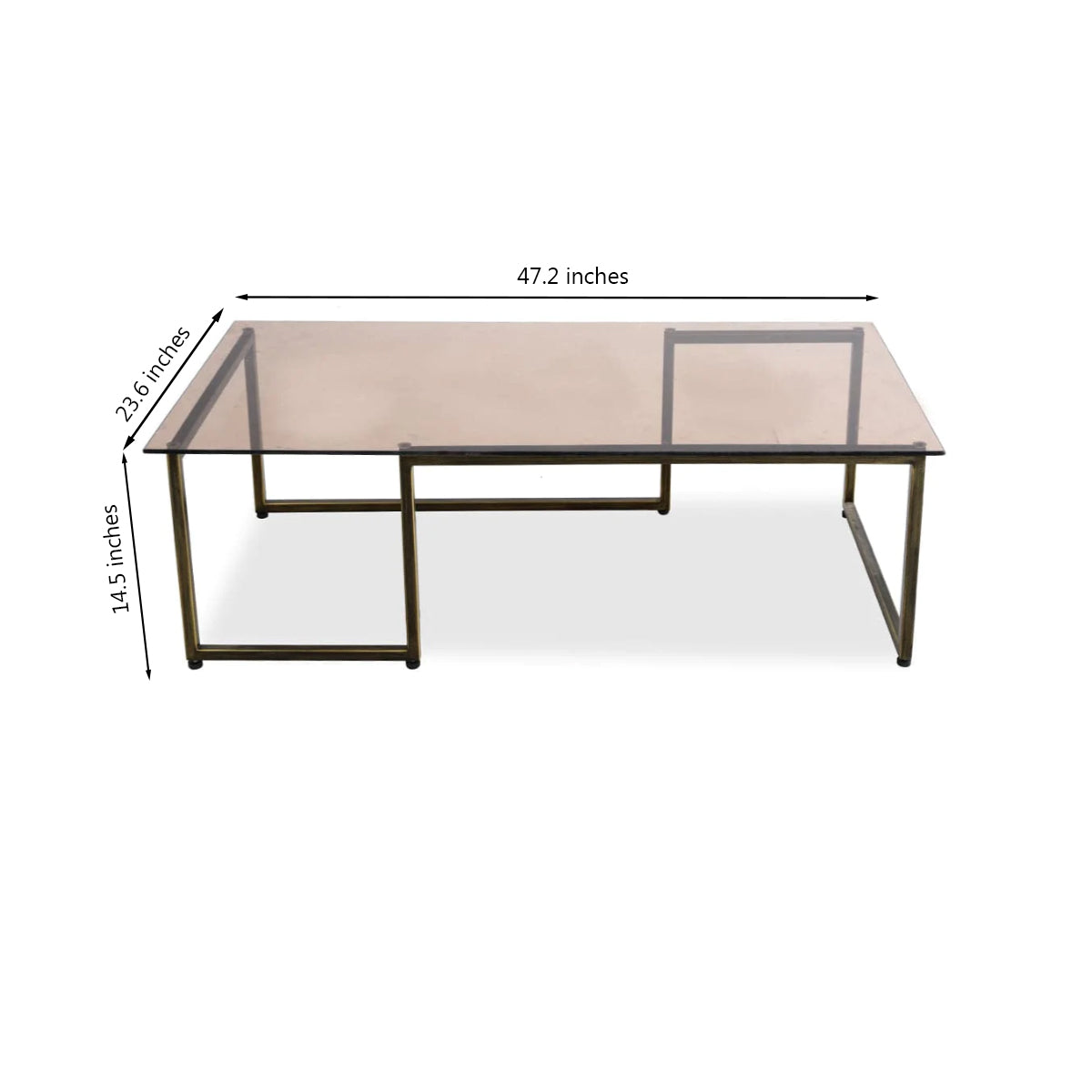 Glass top sitting on an Antique Gold coated metal frame will make this coffee table stand out in any drawing room.ÊPair itÊwith the Ross Side Table and Ross Sofa to add a touch of luxury.
