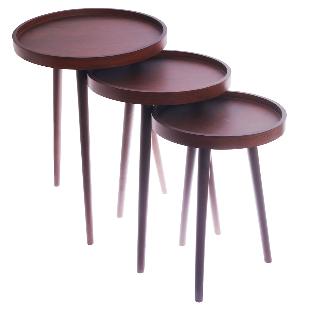 Stylish beech wood nesting tables with vibrant digital prints. Set of 3 for versatile use in any room. Perfect addition to any modern home.