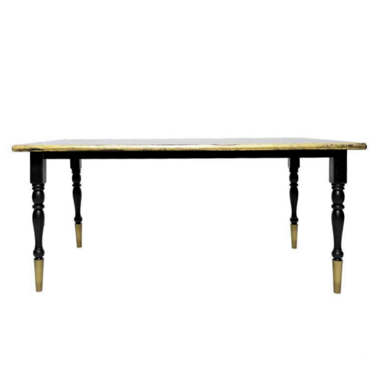 Material: Solid Beech Wood Base in Black and Golden Deco Finish |ÊLaminated Board Top with Gold Leaf edging on the sides.