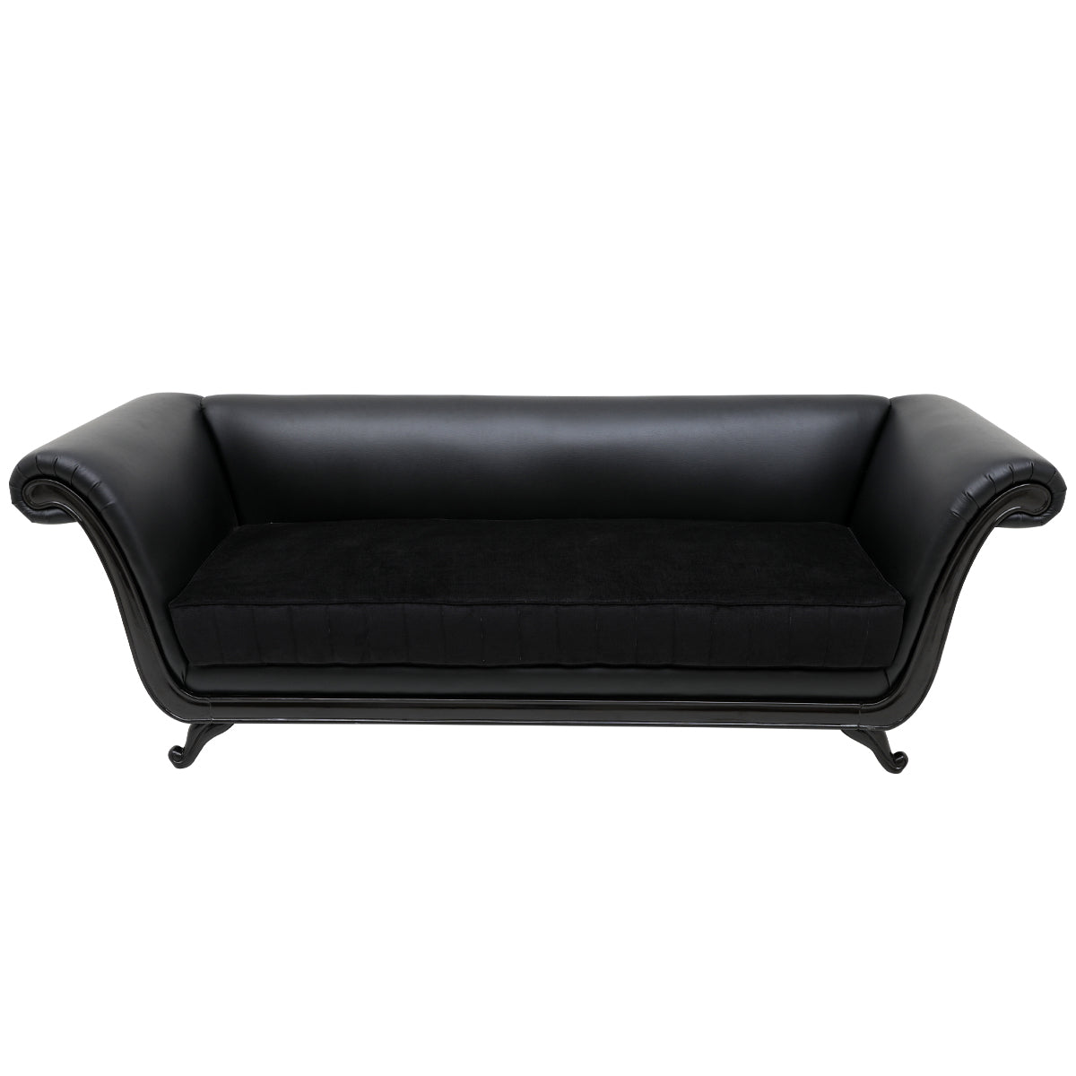This elegant black suede sofa is the perfect addition to any dŽcor. It features a timeless yet modern style, with a sleek profile and luxuriously soft suede upholstery.ÊThe black suede color gives it a luxurious look, while the soft texture and sheen will be sure to bring a touch of elegance to any room.