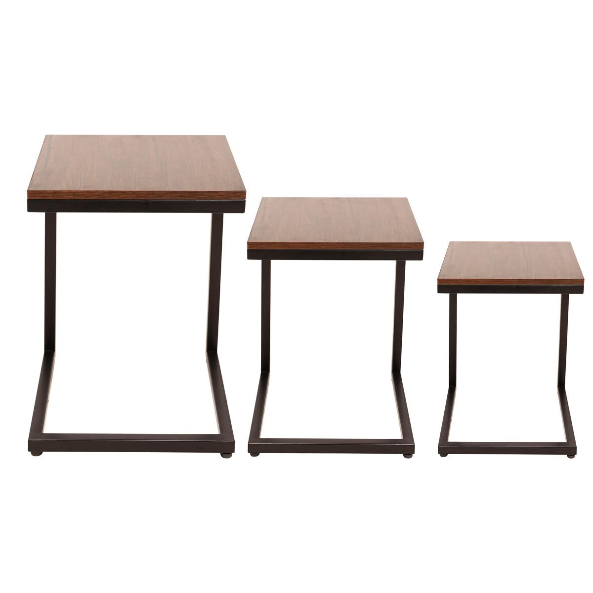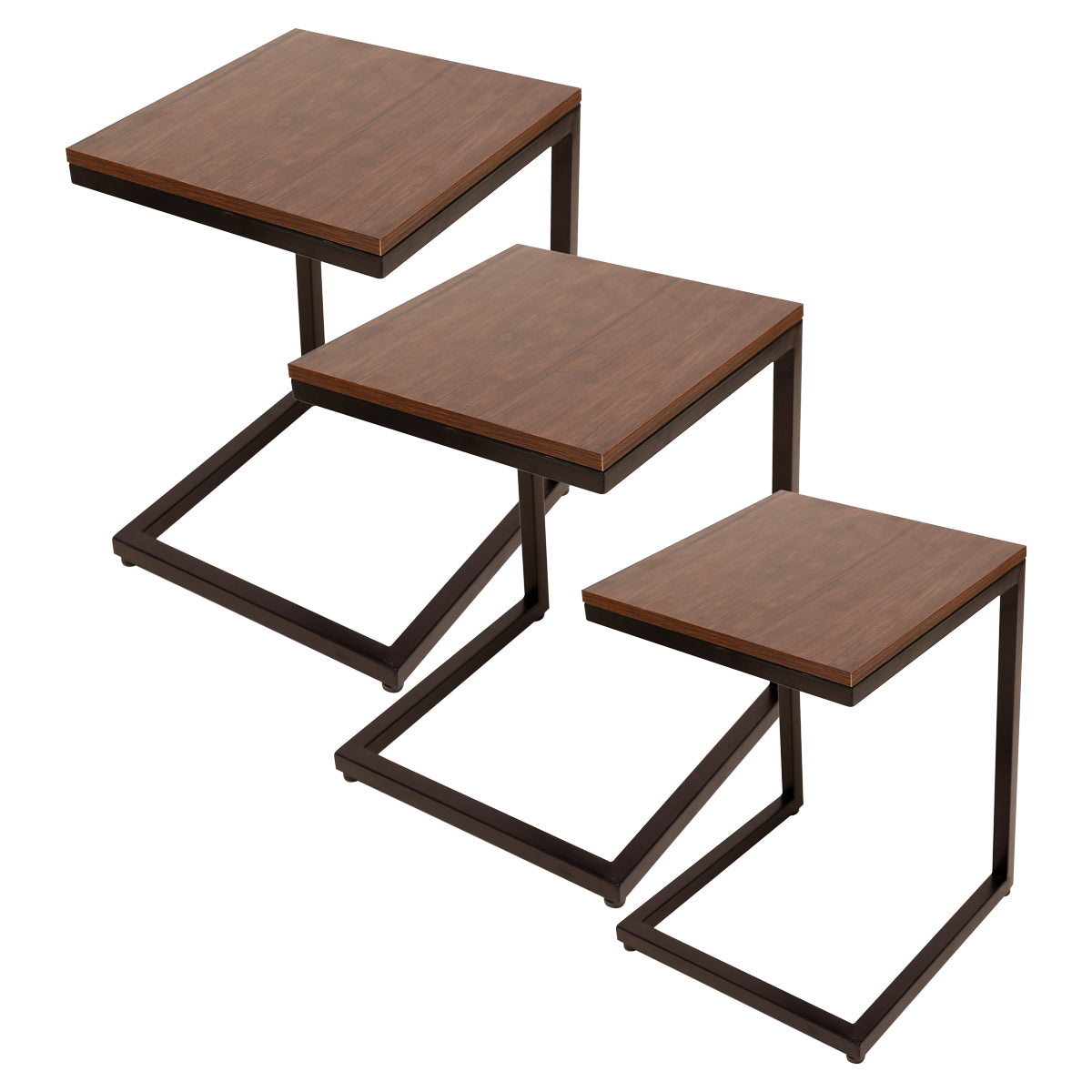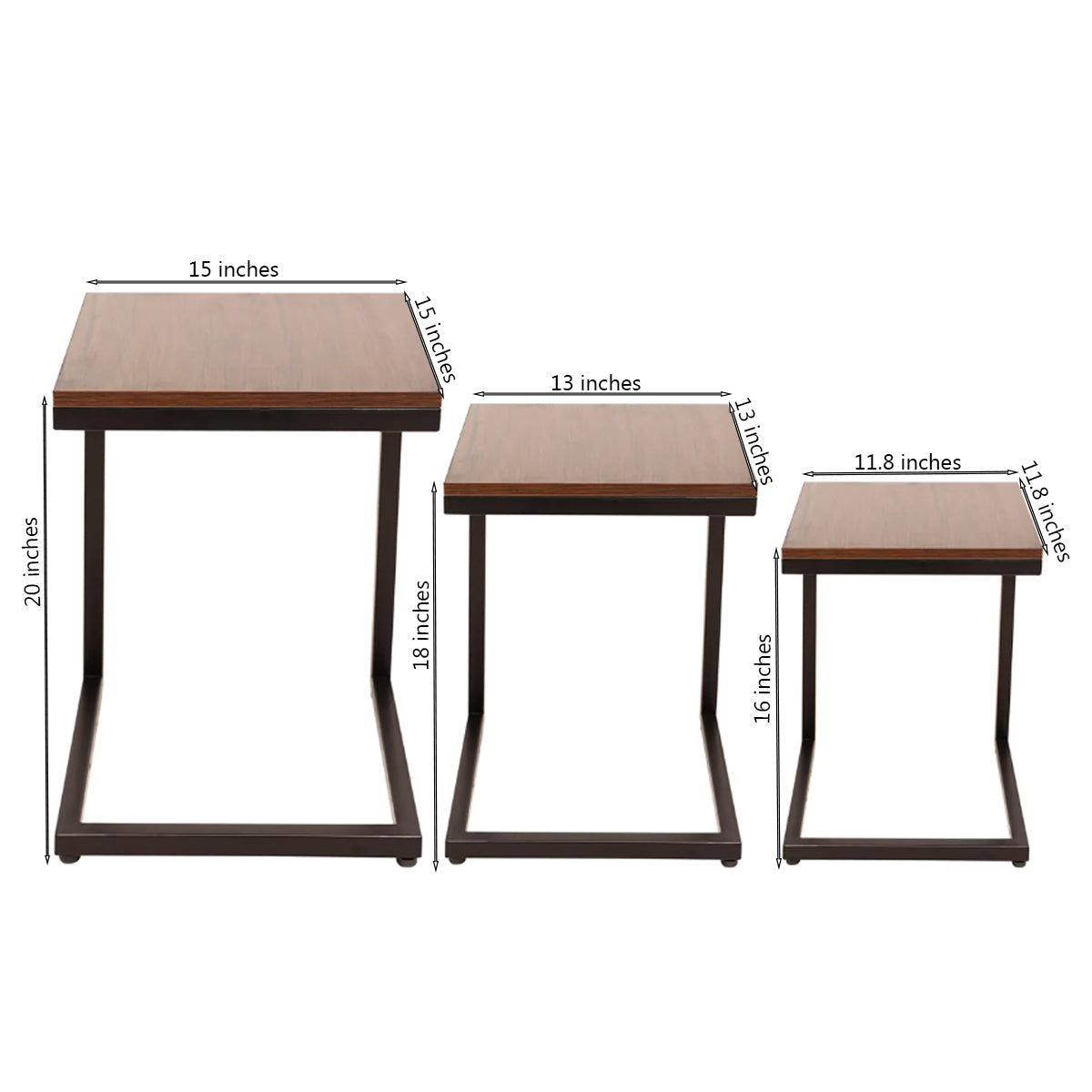 Add mid-century modern flair to any room with this set of wooden tops and metal legs nesting tables.